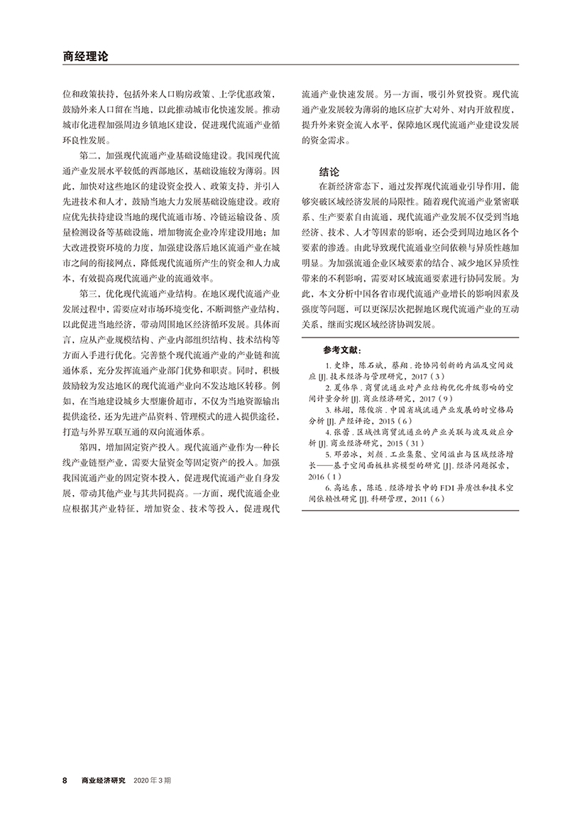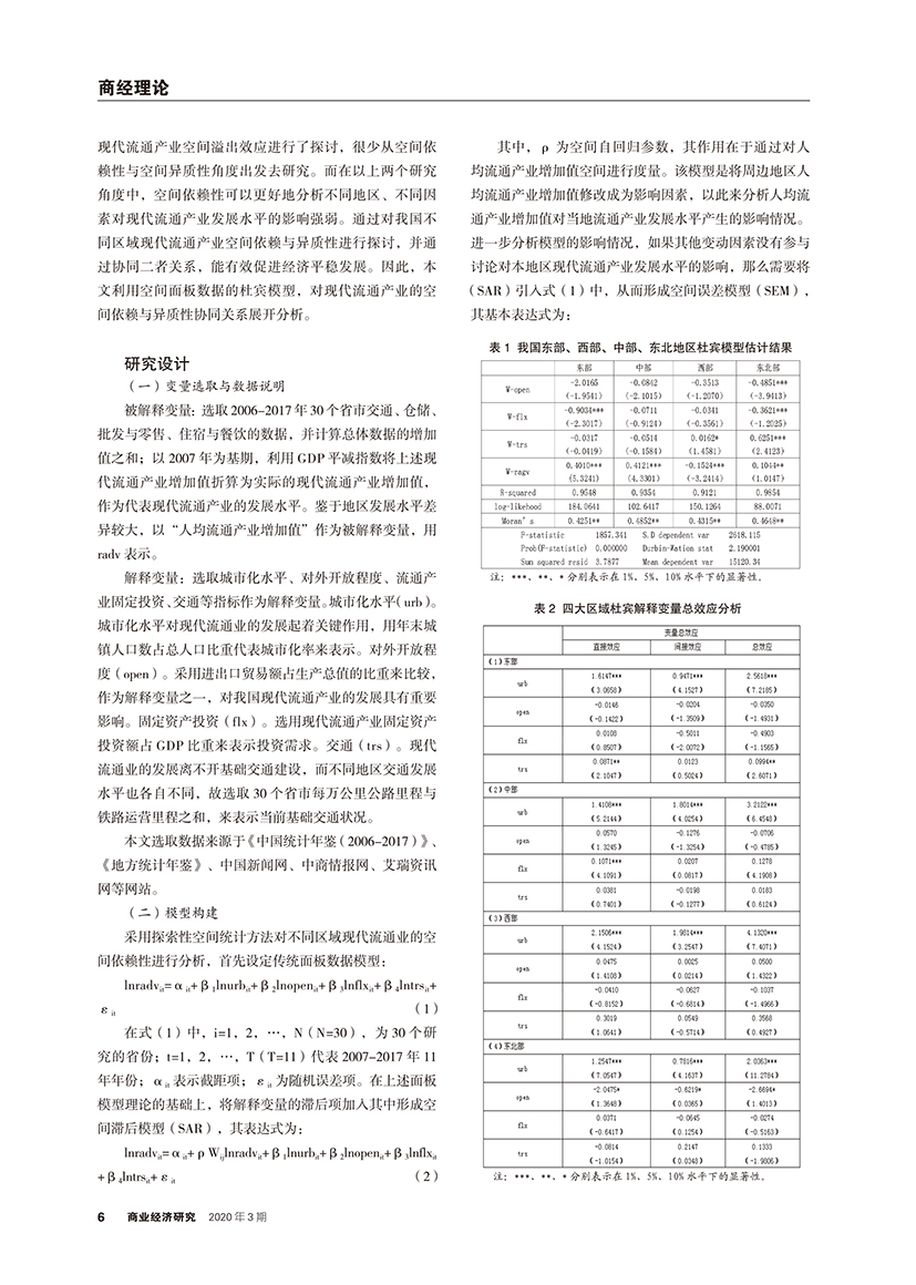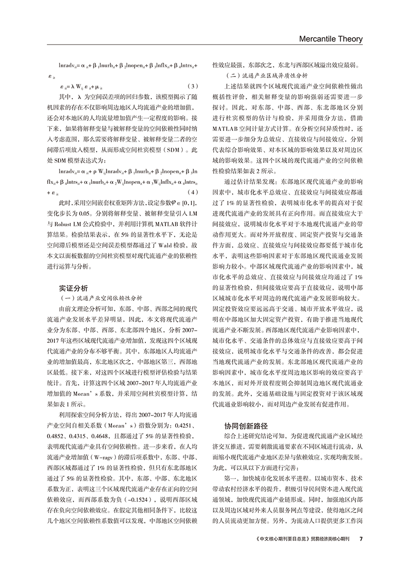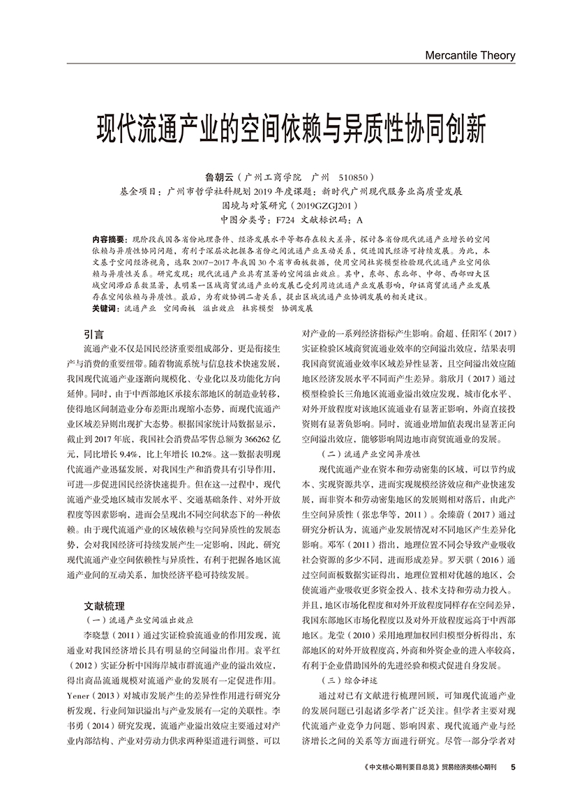 | 现代流通产业的空间依赖与异质性协同创新 |