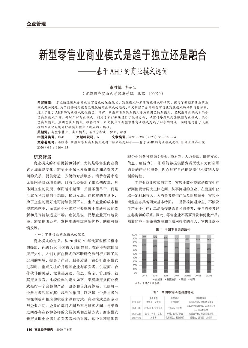 | 新型零售业商业模式是趋于独立还是融合 ——基于AHP的商业模式选优 |