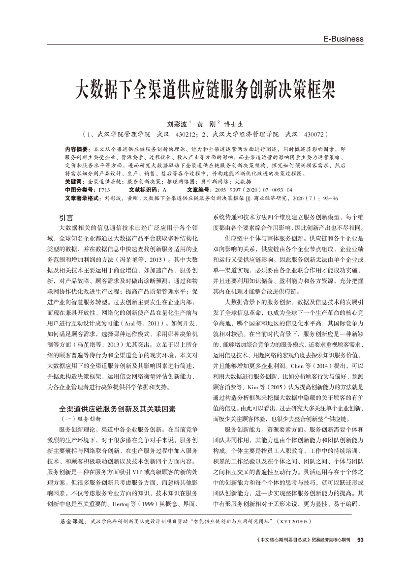 | 大数据下全渠道供应链服务创新决策框架 |