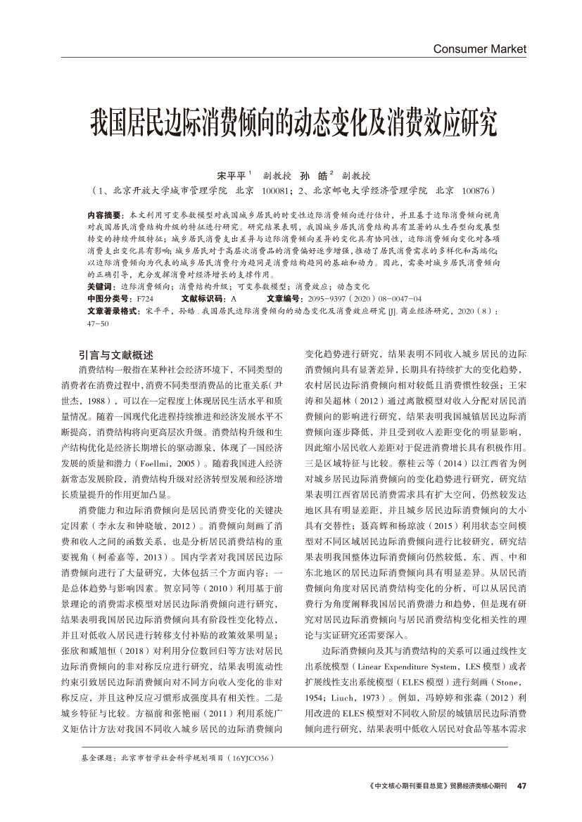 | 我国居民边际消费倾向的动态变化及消费效应研究 |