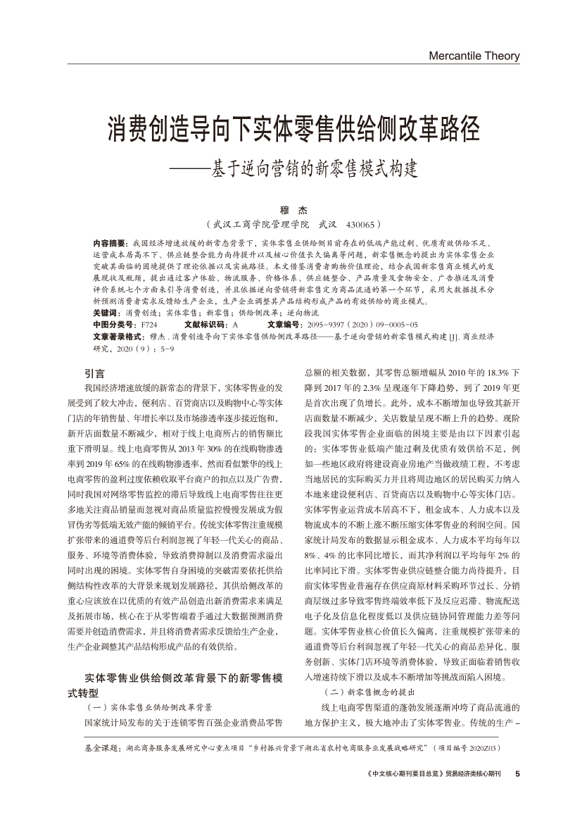 | 消费创造导向下实体零售供给侧改革路径 ——基于逆向营销的新零售模式构建 |