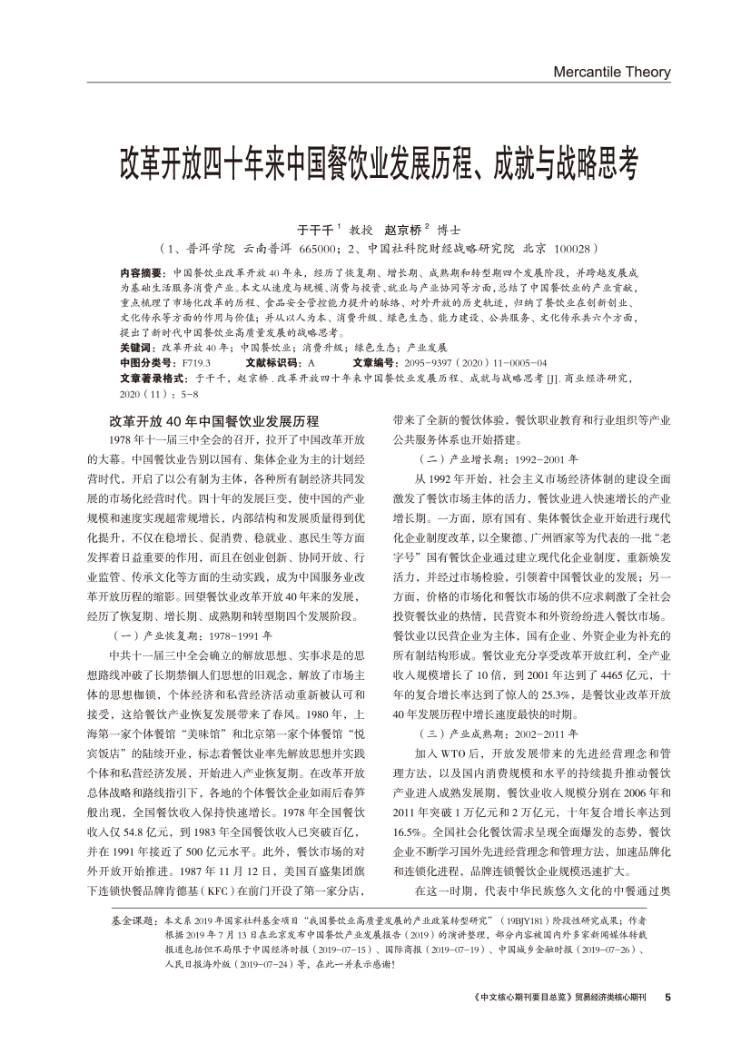 | 改革开放四十年来中国餐饮业发展历程、成就与战略思考 |