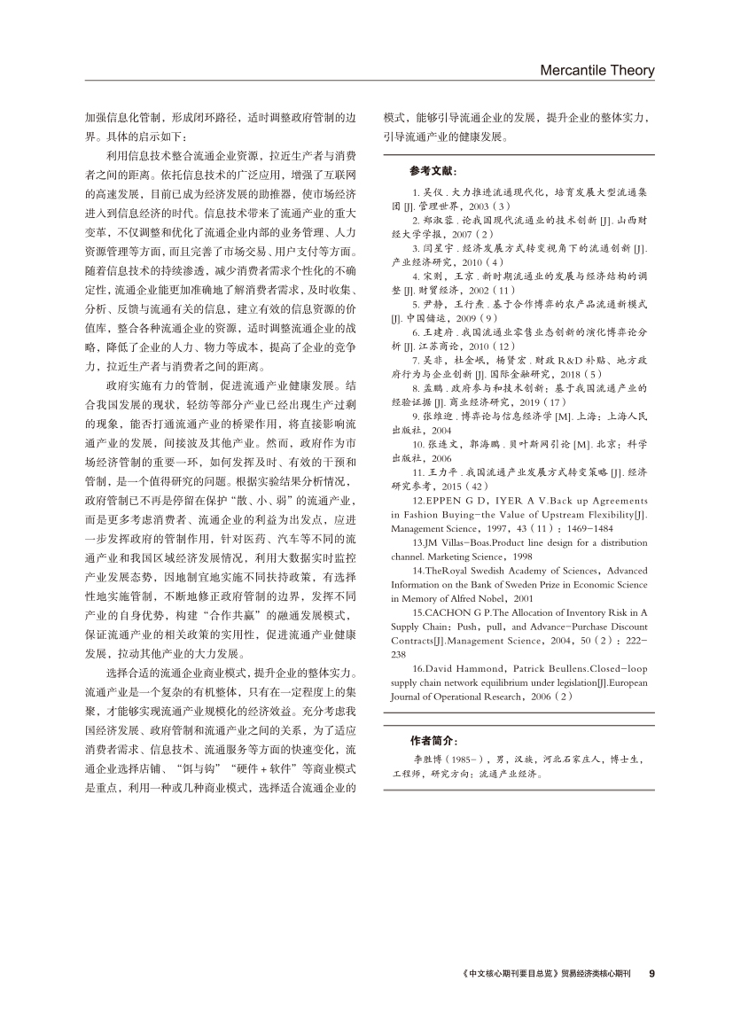 由《商业经济研究》杂志社有限责任公司出版的《商业经济研究》创刊于1982年,是原国家商业部创办的国家一级商业经济类学术期刊,是我国商贸流通领域的重要学术阵地。期刊创办30余年,为传播商业前沿理论、促进流通创新发展、推动商贸流通变革发挥了重要作用,在行业内和学界具有重要影响力。期刊多次入选“CSSCI来源核心期刊”、长期入选“《中文核心期刊要目总览》贸易经济类核心期刊”,系《中国知识资源总库社会科学期刊精品库》、《万方数据-数字化期刊群》、《中国人文社会科学期刊评价报告(AMI)》、《维普中文科技期刊数据库》等收录期刊,中国人民大学书报资料中心复印报刊资料分类转载量排名前茅期刊,2023年继续入编最新版北京大学《中文核心期刊要目总览》目录,系贸易经济类核心期刊。