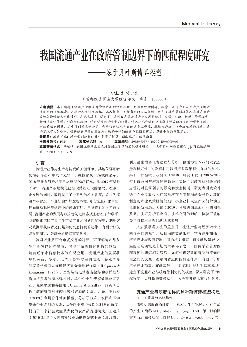 我国流通产业在政府管制边界下的匹配程度研究—基于贝叶斯博弈模型