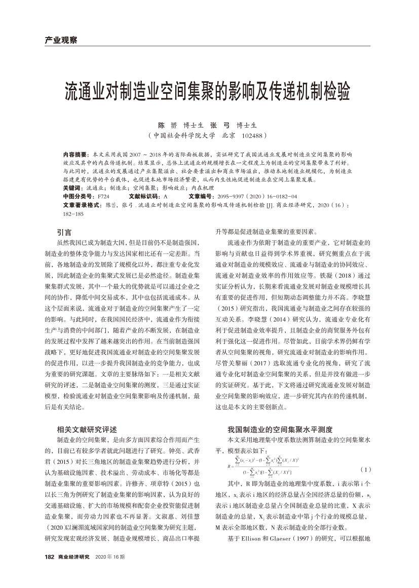 | 流通业对制造业空间集聚的影响及传递机制检验 |