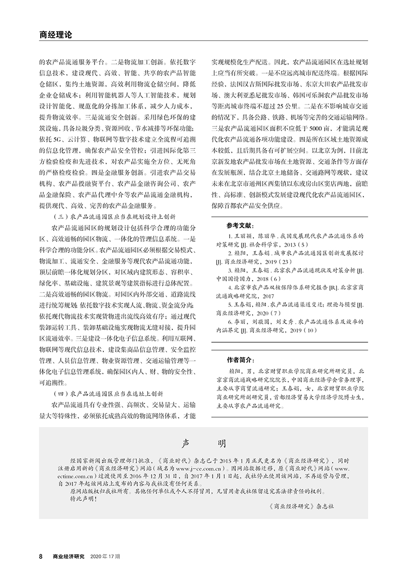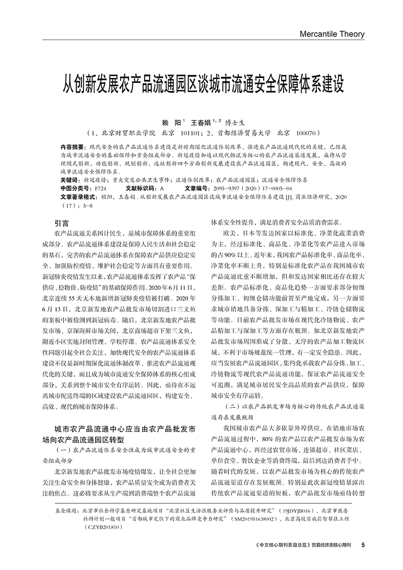| 从创新发展农产品流通园区谈城市流通安全保障体系建设 |