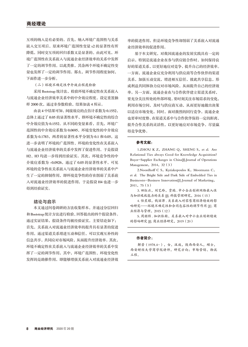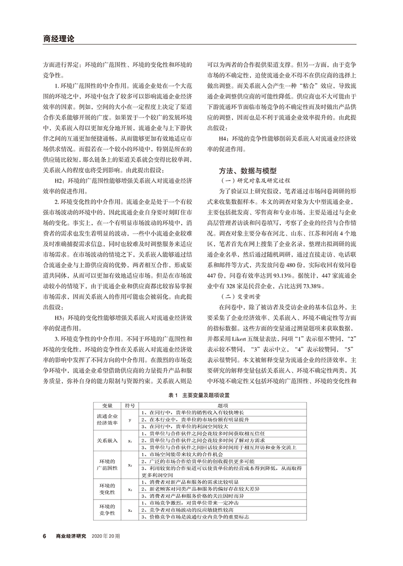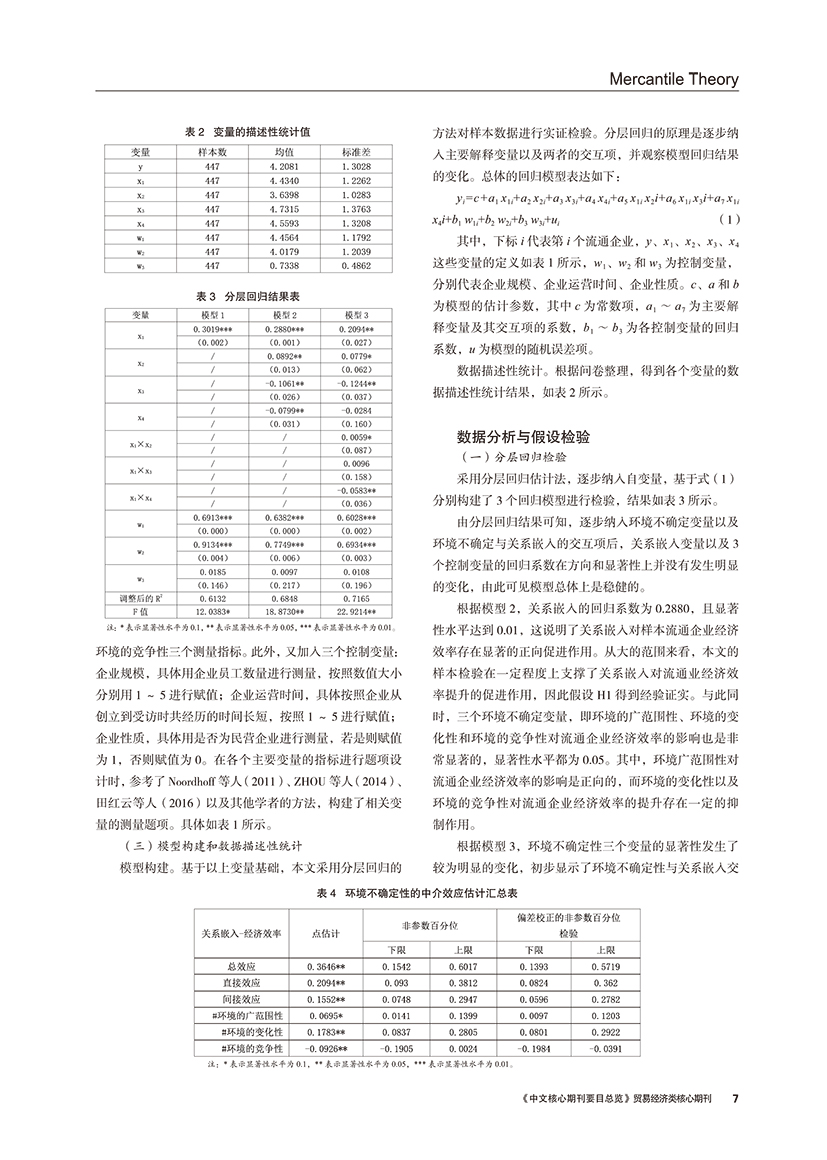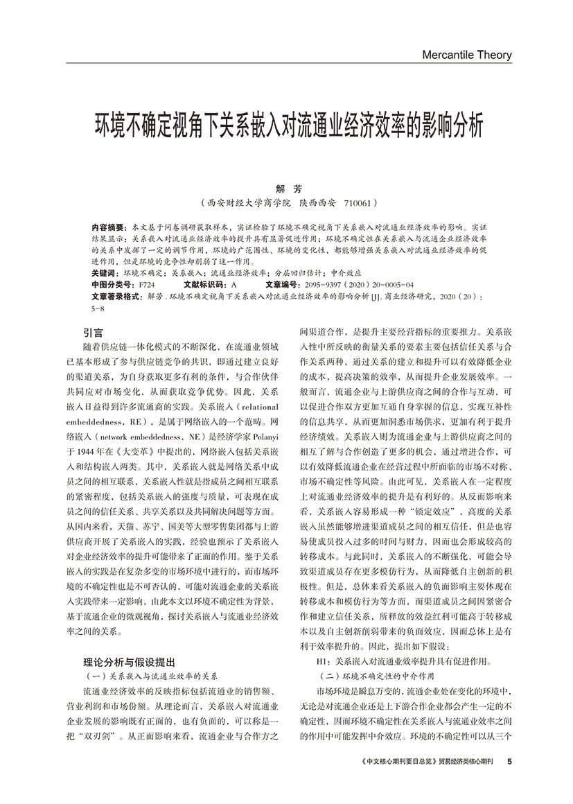 | 环境不确定视角下关系嵌入对流通业经济效率的影响分析 |