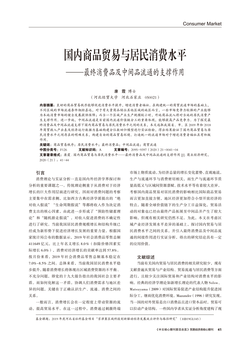 | 国内商品贸易与居民消费水平—最终消费品及中间品流通的支撑作用 |