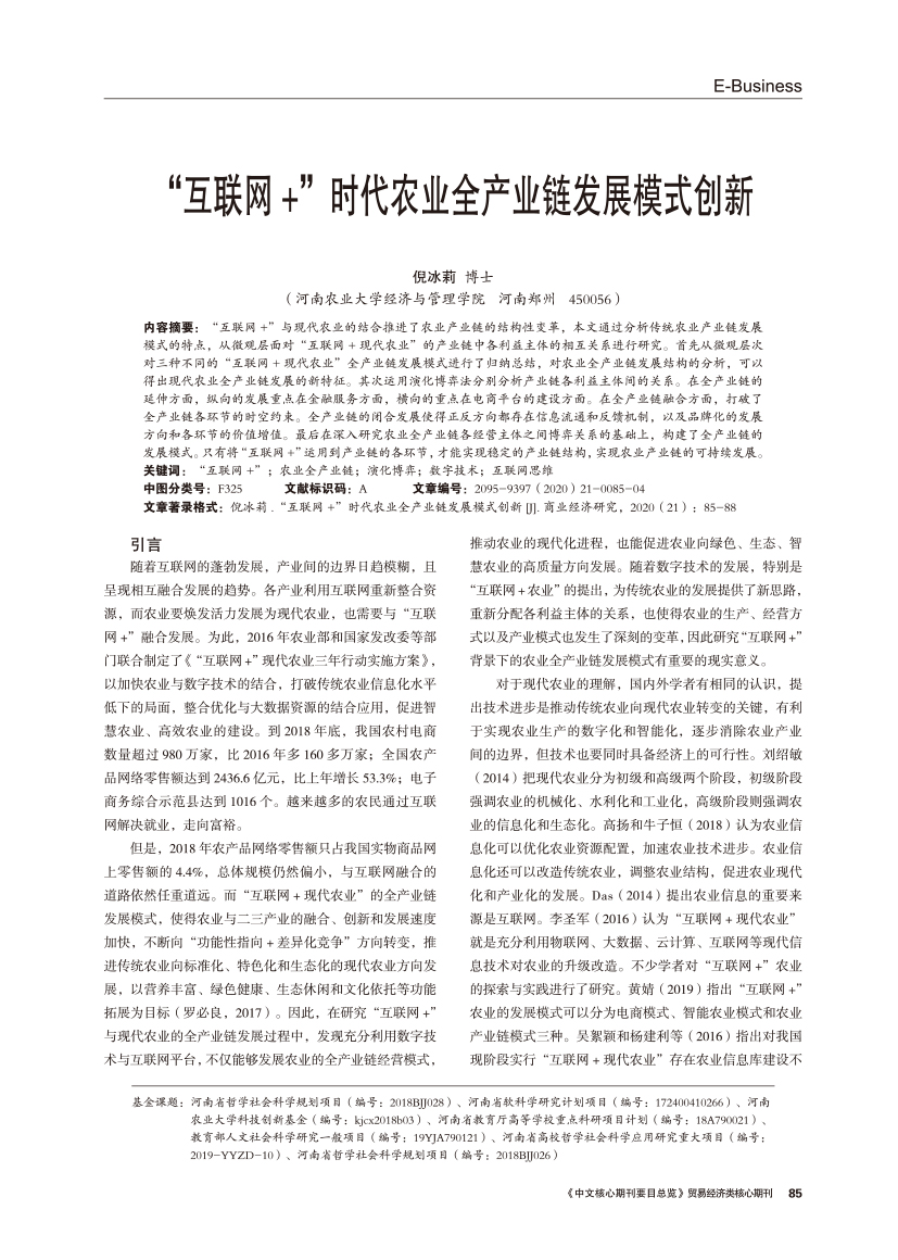| “互联网+”时代农业全产业链发展模式创新 |