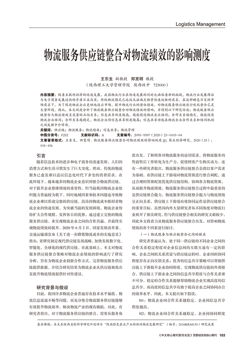 | 物流服务供应链整合对物流绩效的影响测度 |