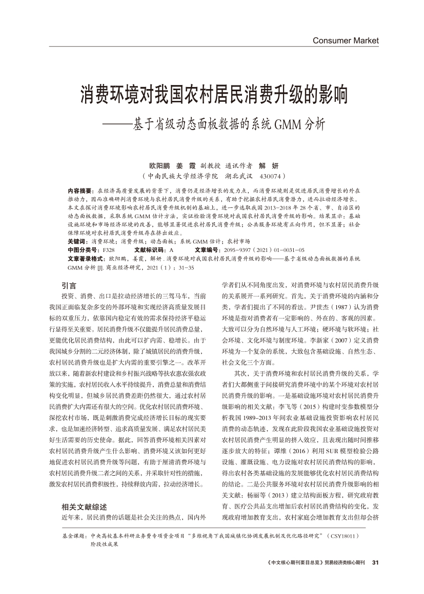 | 消费环境对我国农村居民消费升级的影响—基于省级动态面板数据的系统GMM分析 |