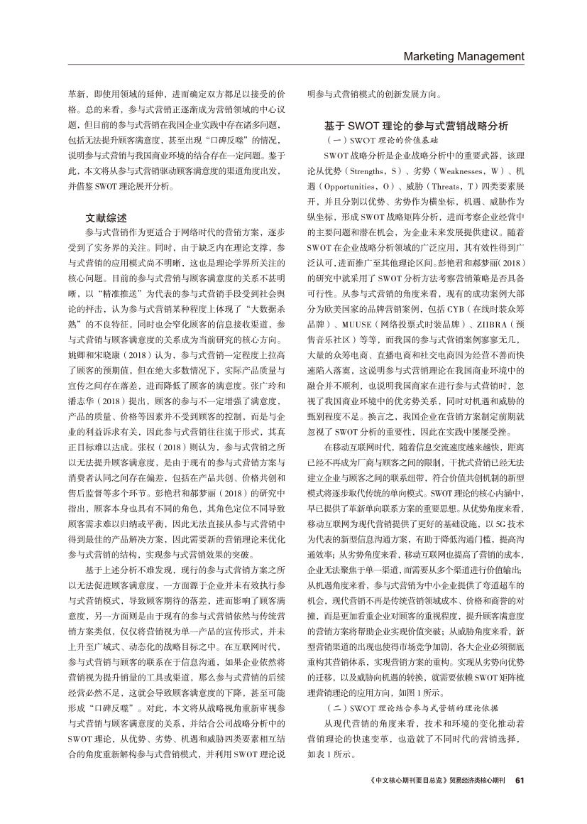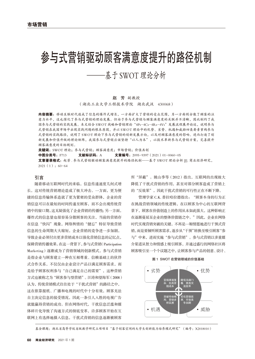 | 参与式营销驱动顾客满意度提升的路径机制—基于SWOT理论分析 |