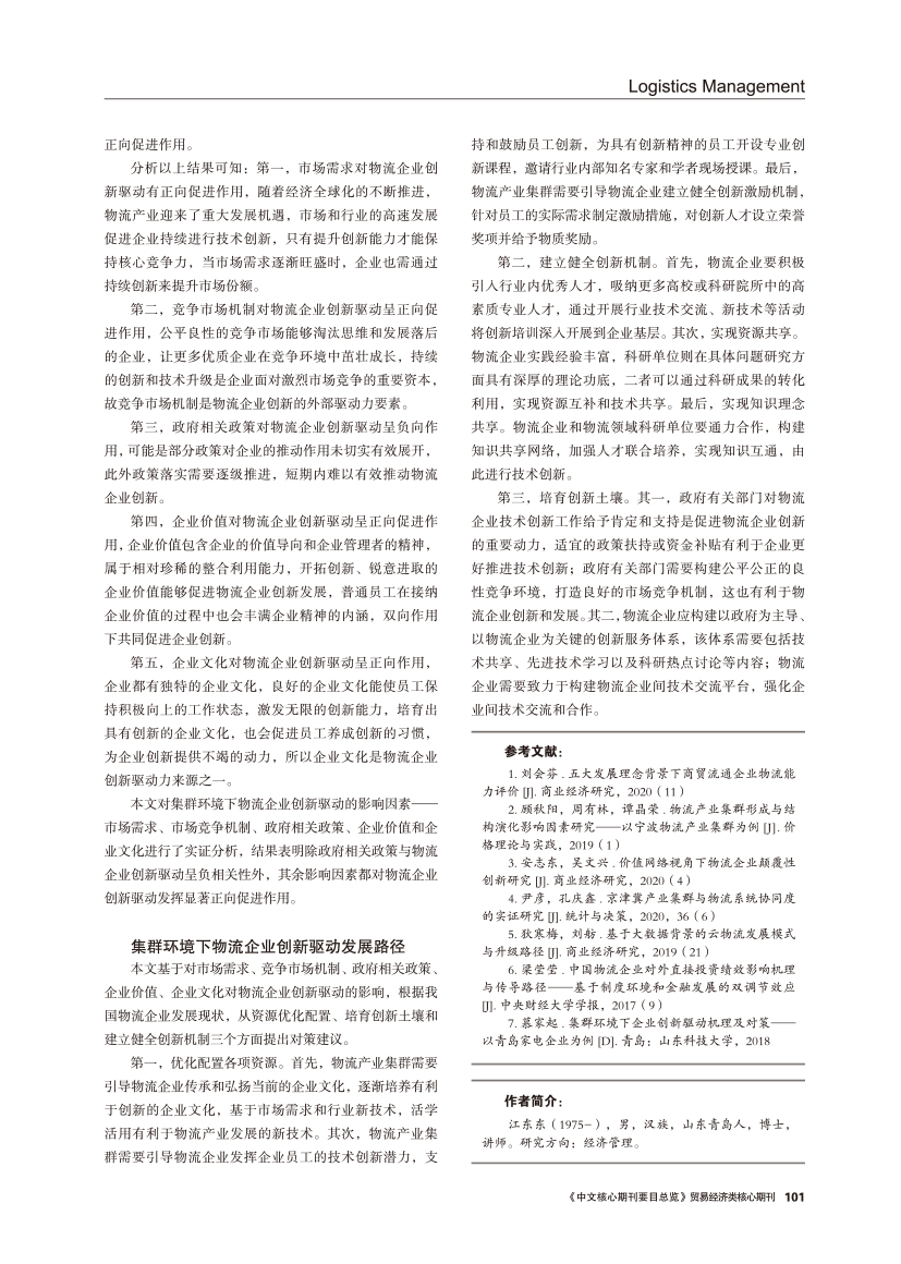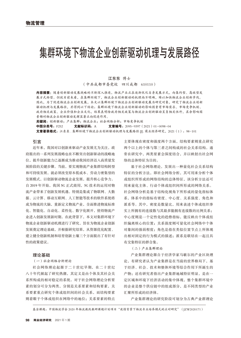 | 集群环境下物流企业创新驱动机理与发展路径 |