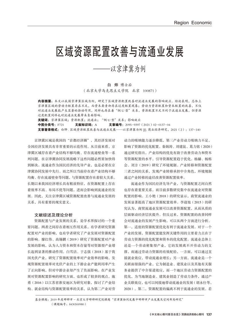 | 区域资源配置改善与流通业发展——以京津冀为例 |