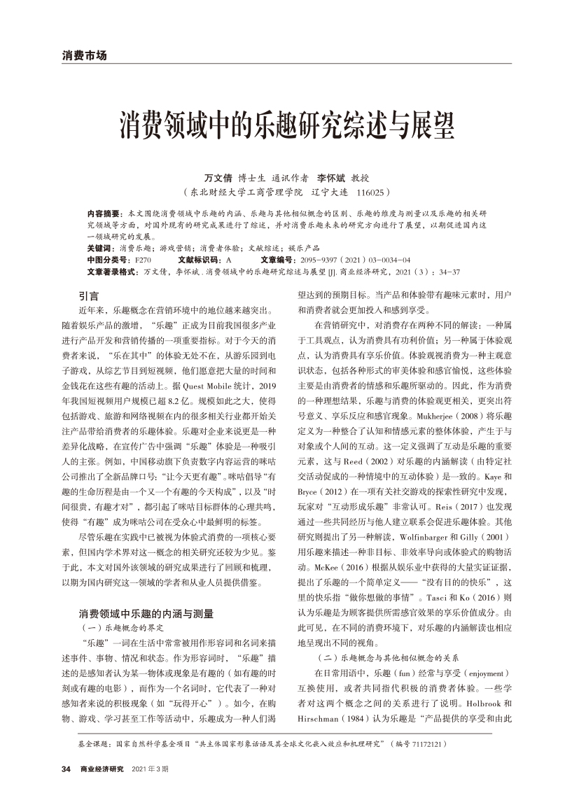 消费领域中的乐趣研究综述与展望