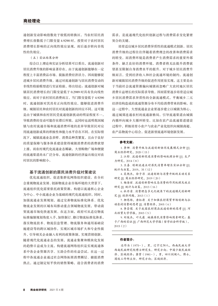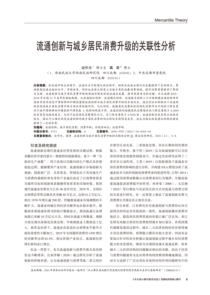 | 流通创新与城乡居民消费升级的关联性分析 |