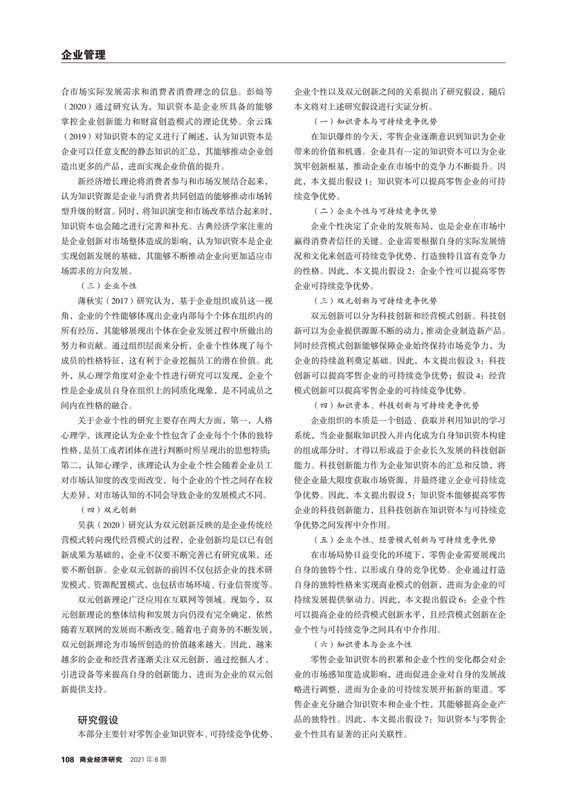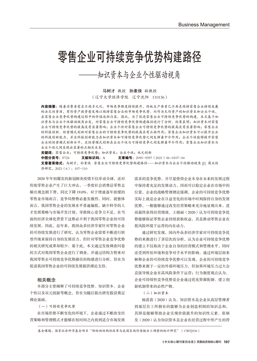 | 零售企业可持续竞争优势构建路径 —知识资本与企业个性驱动视角 |