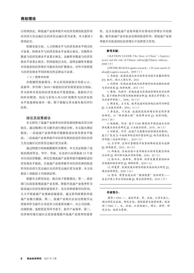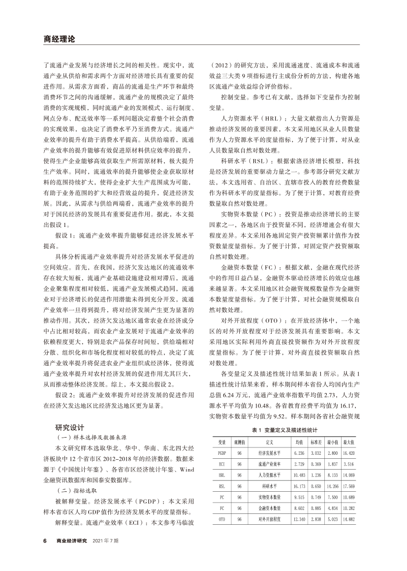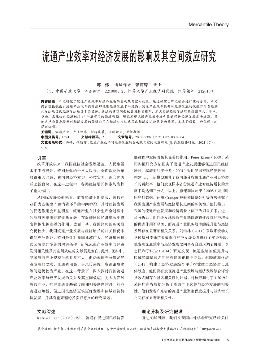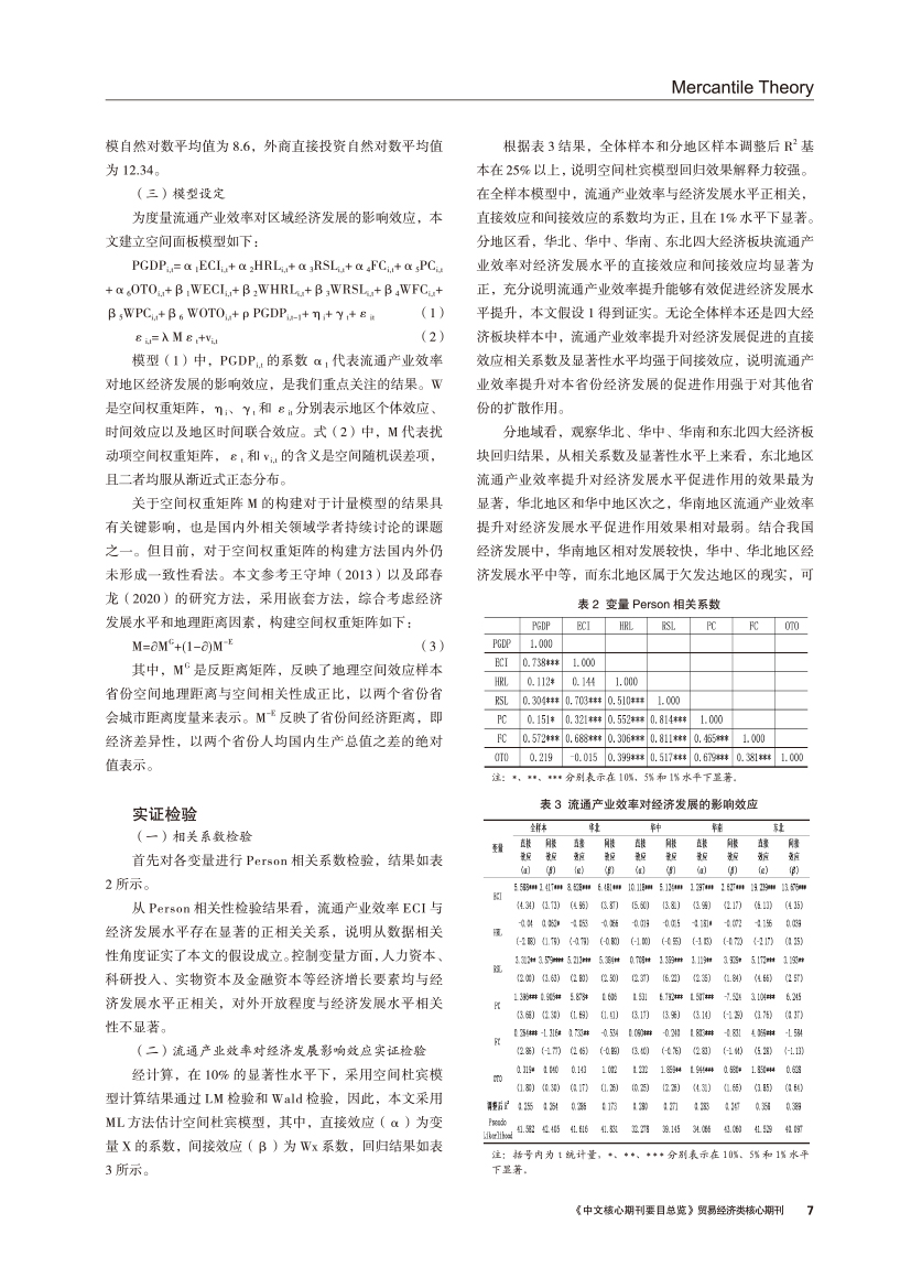 | 流通产业效率对经济发展的影响及其空间效应研究 |