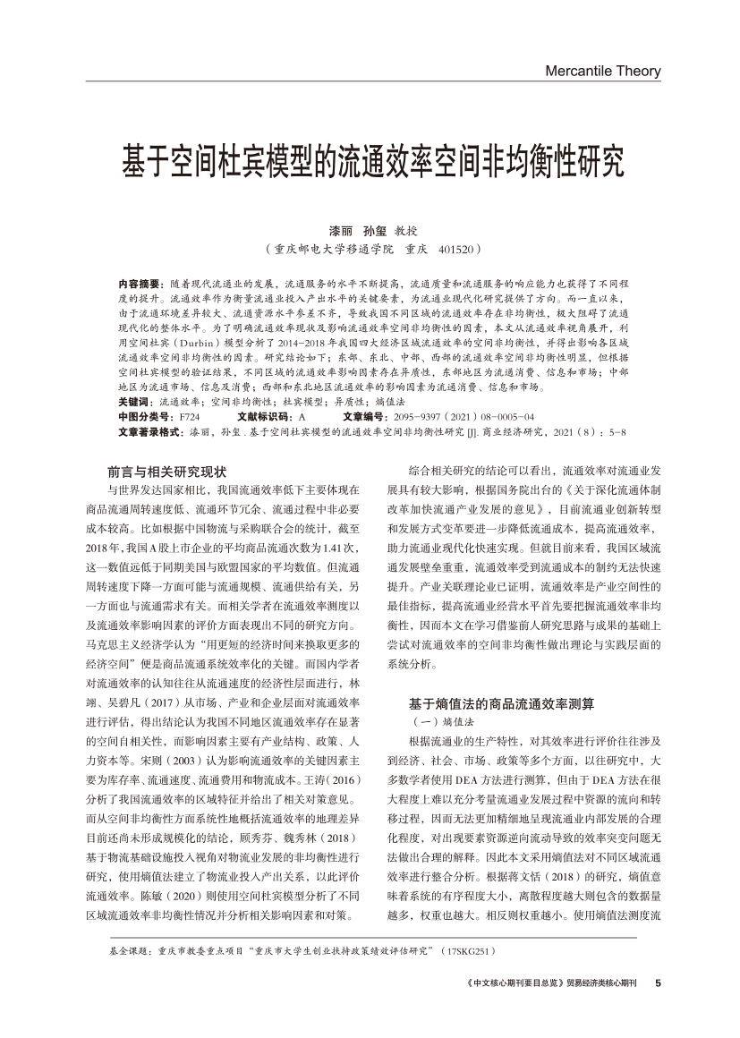 | 基于空间杜宾模型的流通效率空间非均衡性研究 |