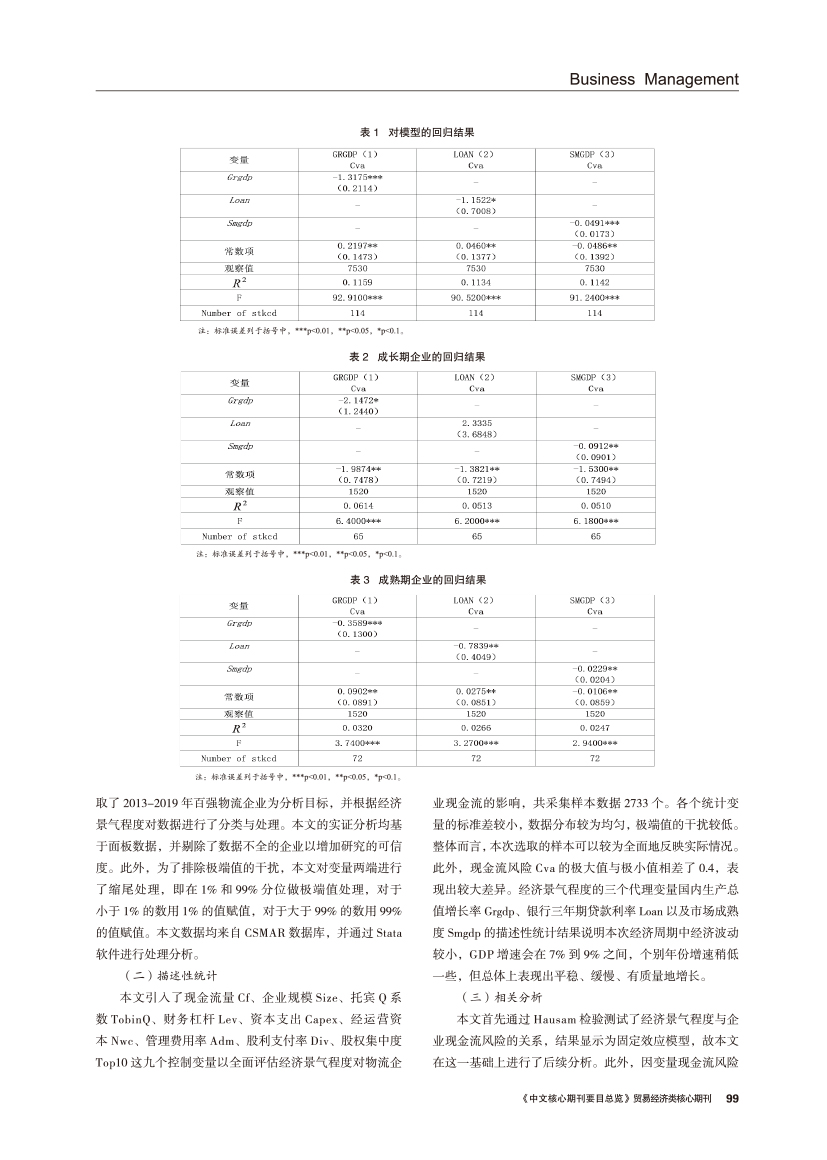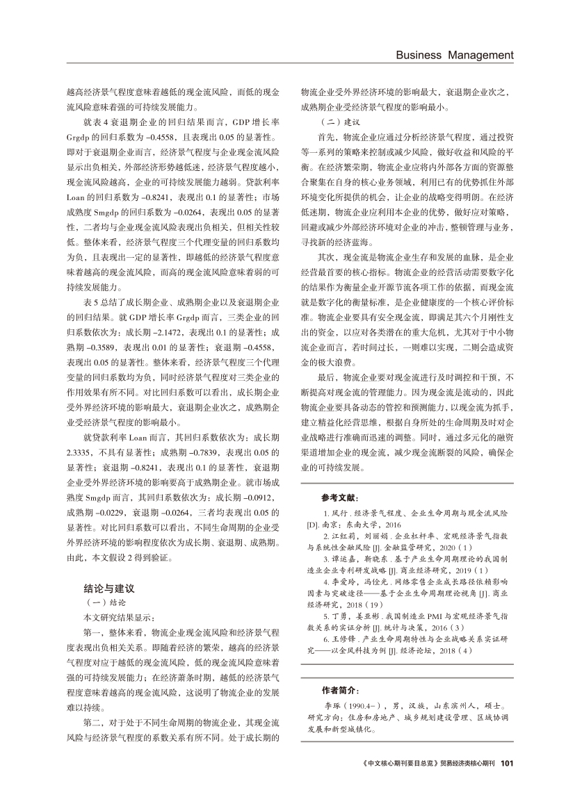 | 物流企业可持续发展与经济景气程度的相关性研究:基于企业生命周期视角 |