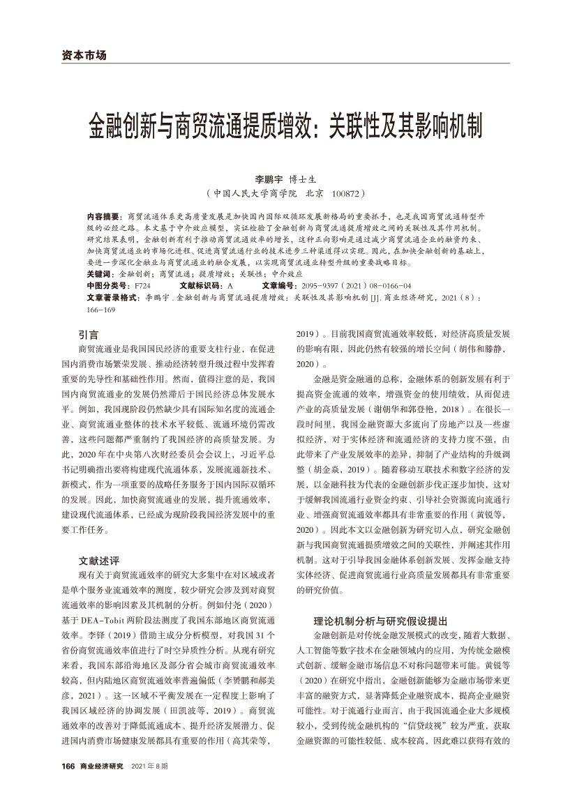 | 金融创新与商贸流通提质增效:关联性及其影响机制 |