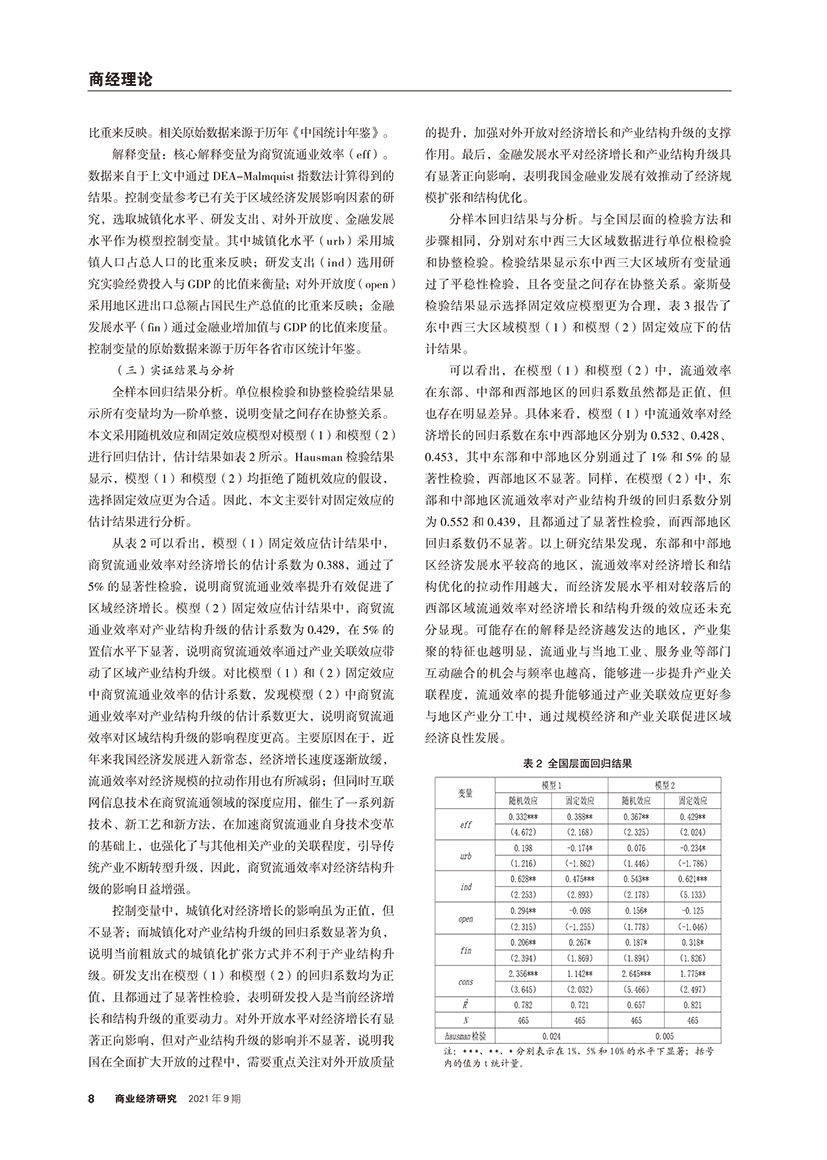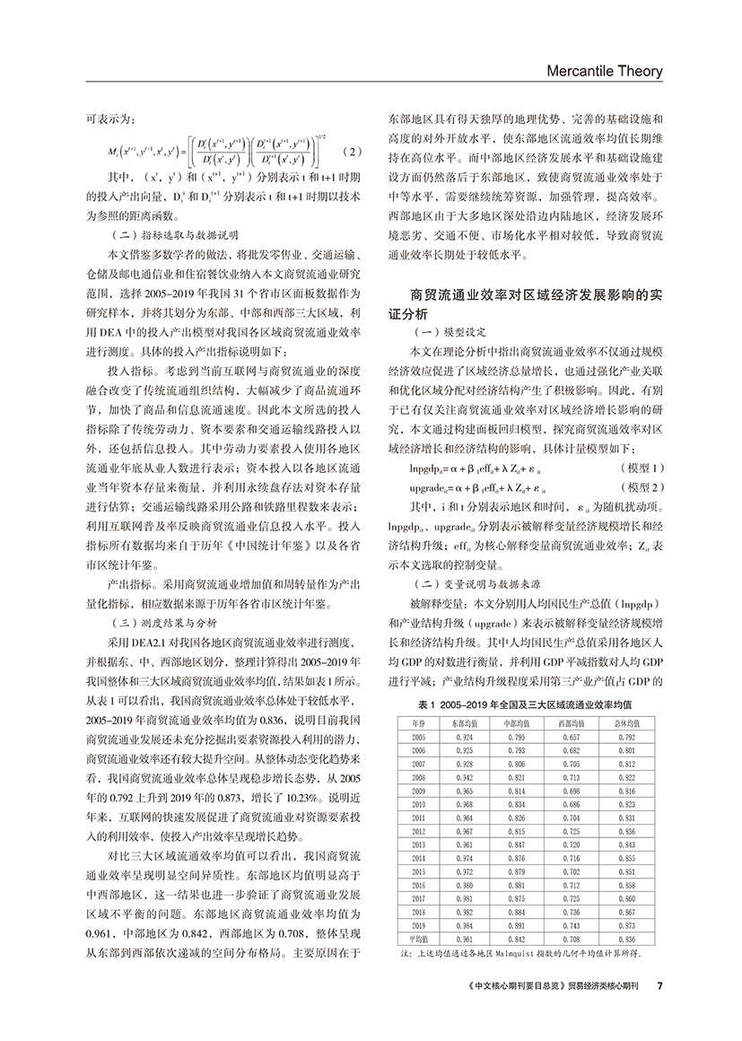 | 新发展格局下商贸流通业效率对区域经济发展的影响 |