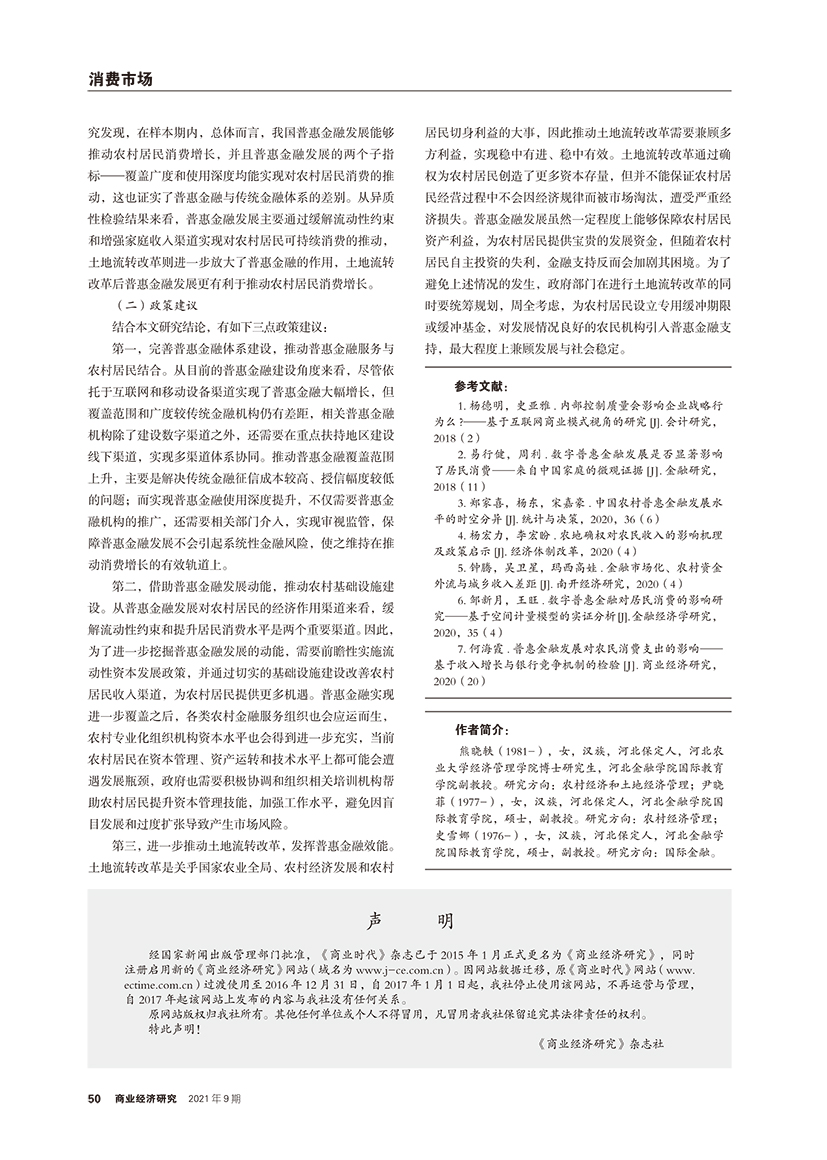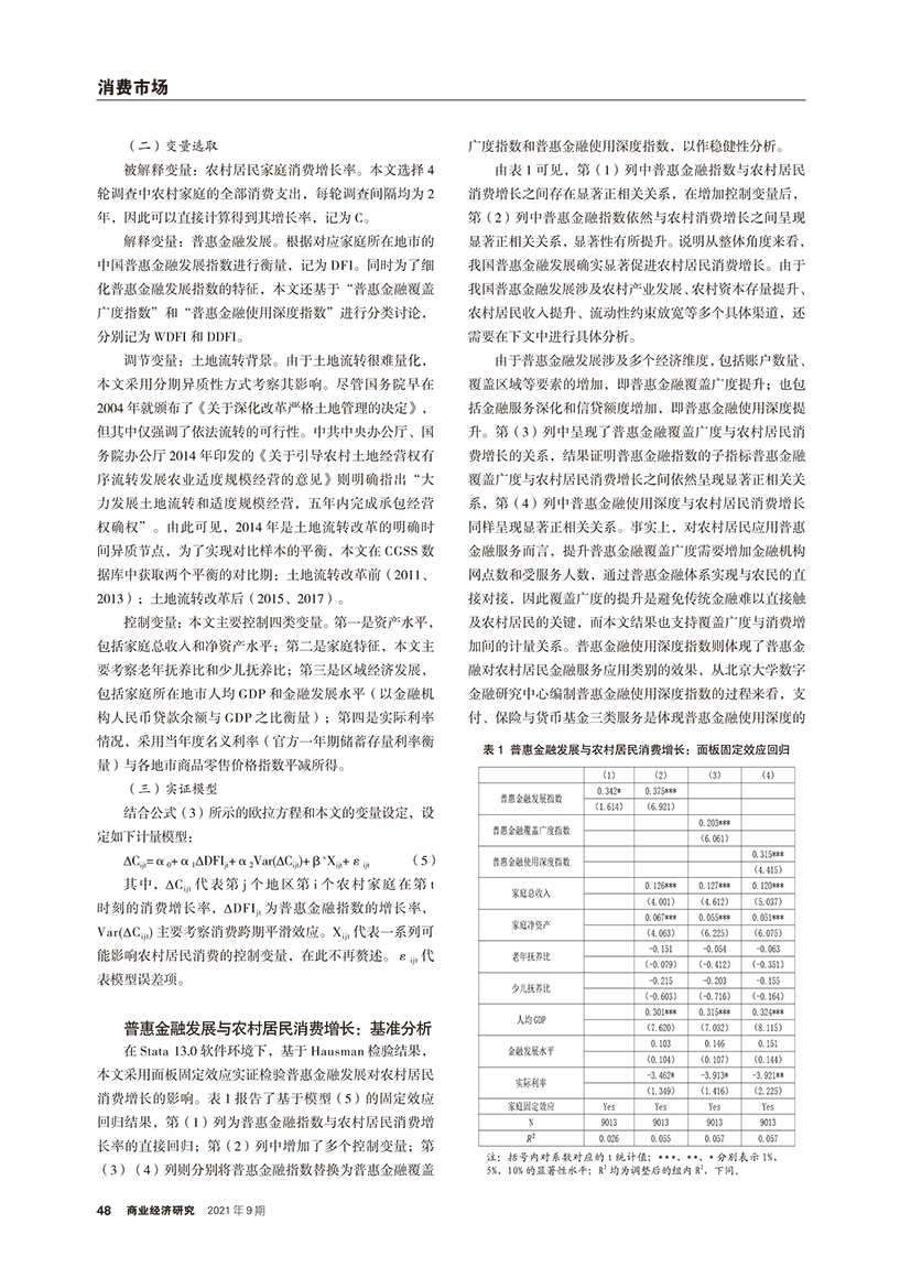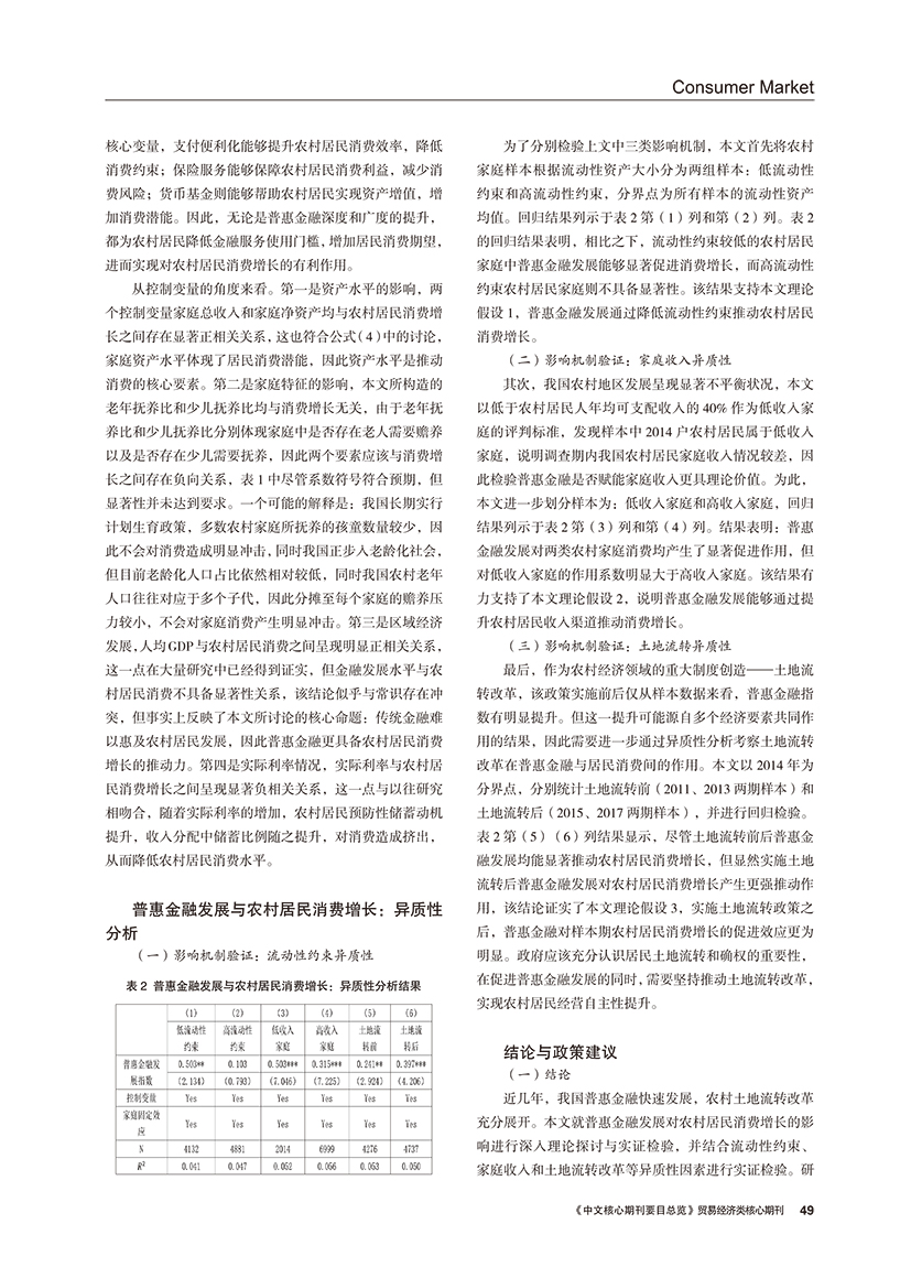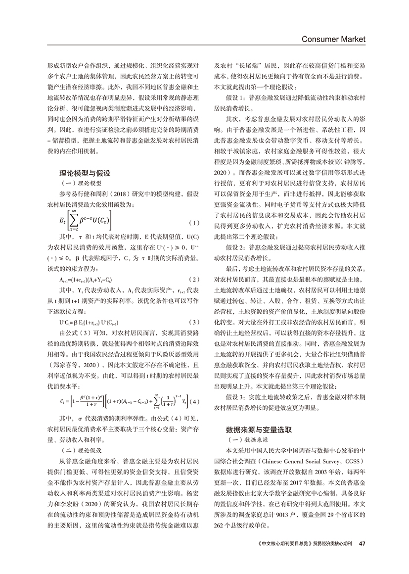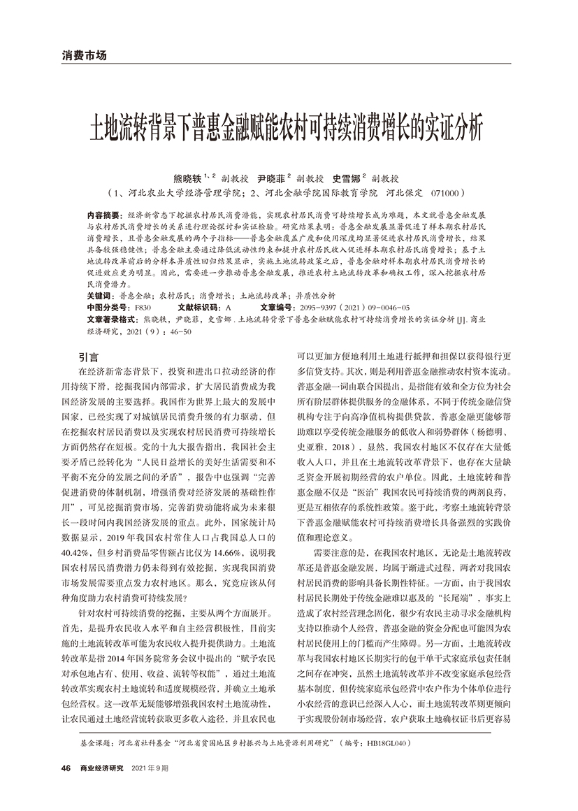 | 土地流转背景下普惠金融赋能农村可持续消费增长的实证分析 |