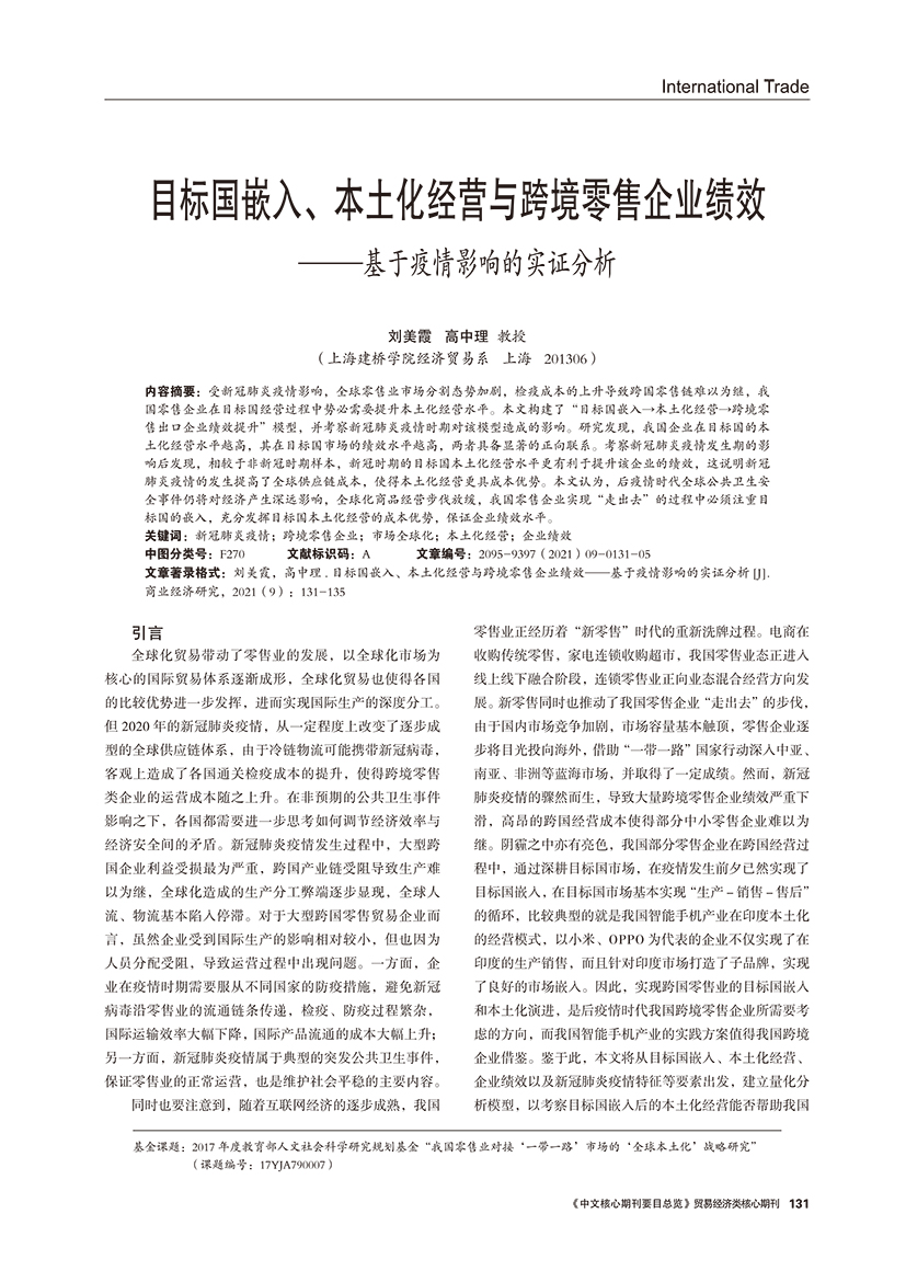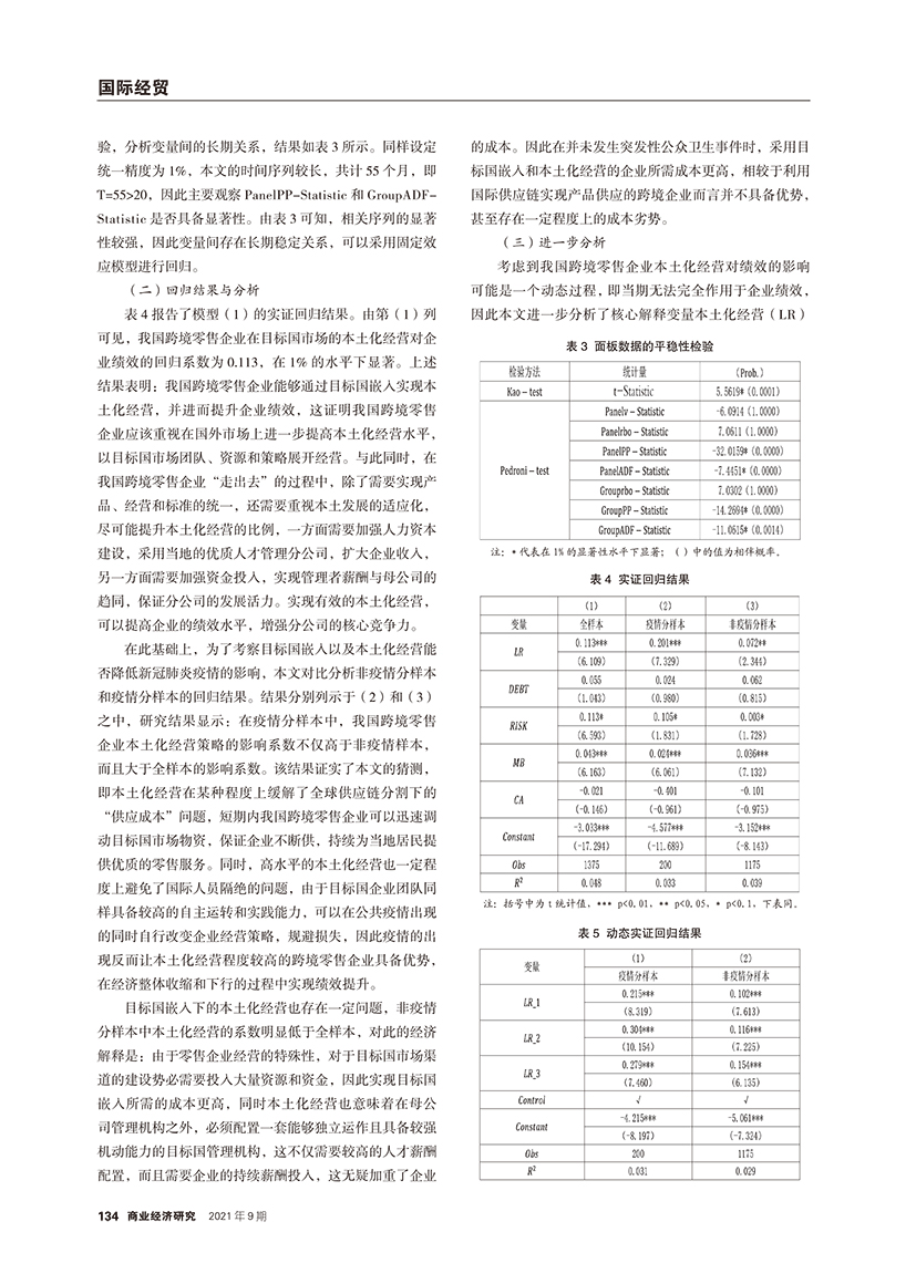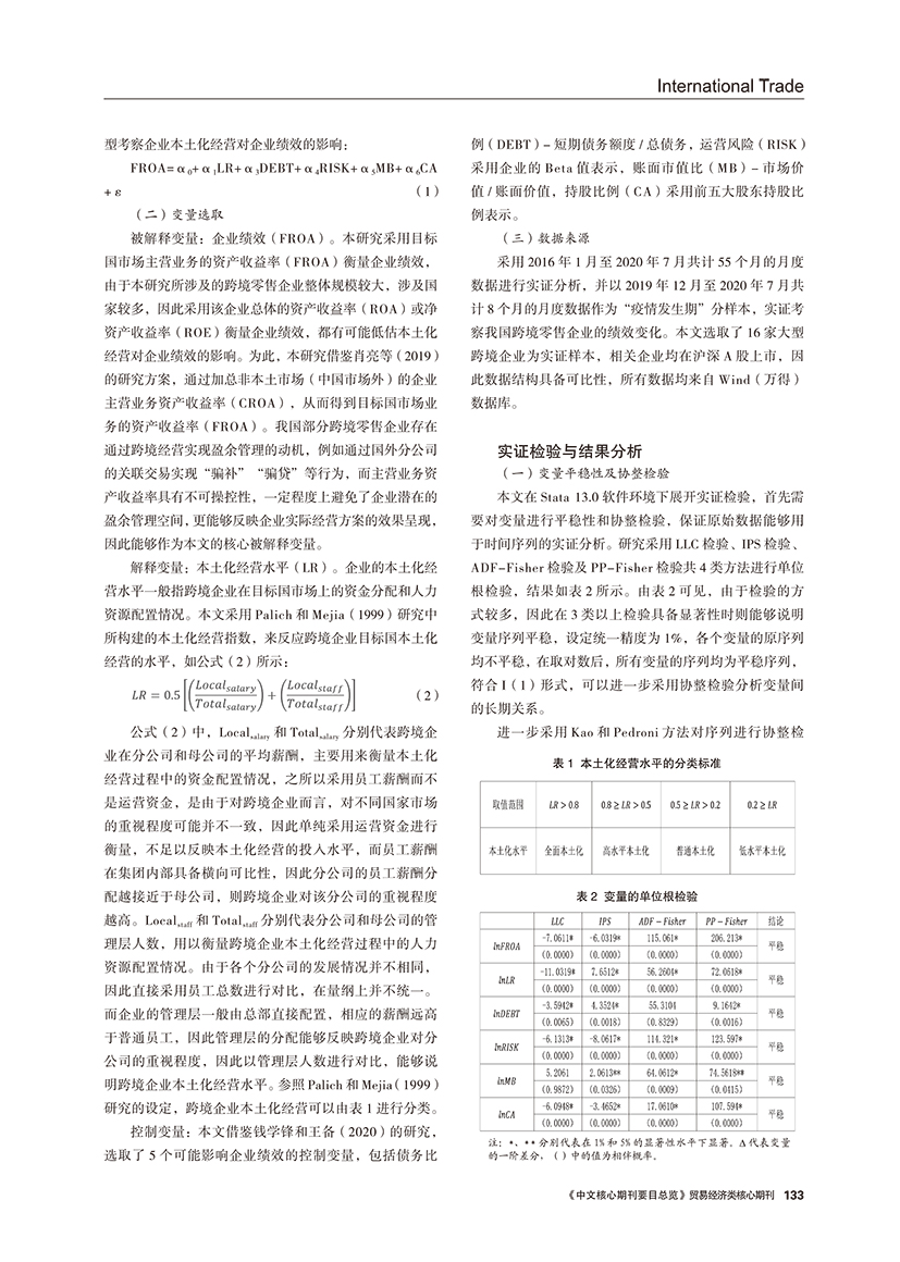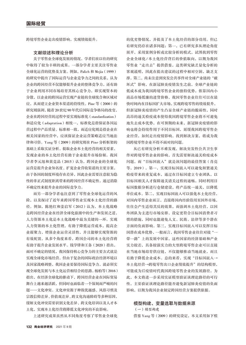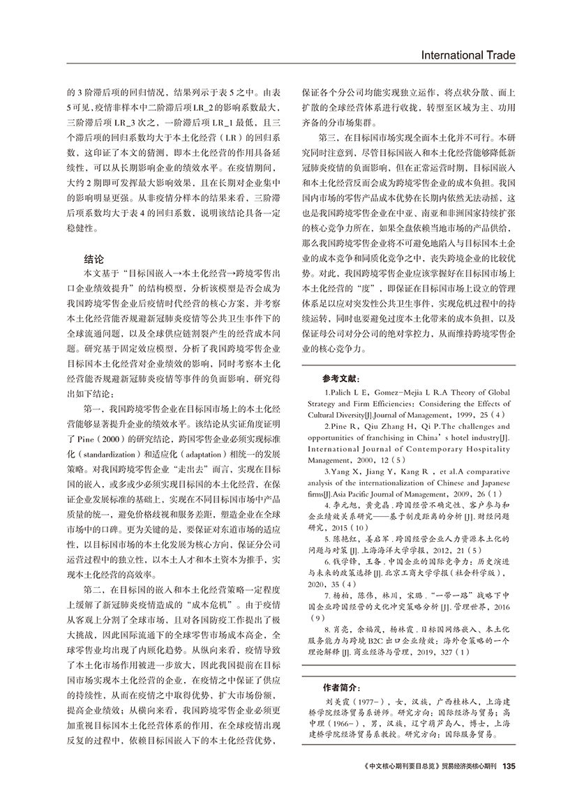 | 目标国嵌入、本土化经营与跨境零售企业绩效 ——基于疫情影响的实证分析 |