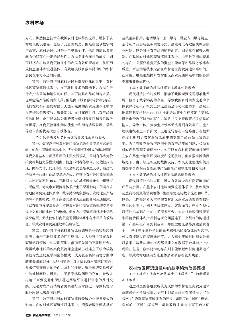 | 农村地区商贸流通的数字化鸿沟与改善路径 |