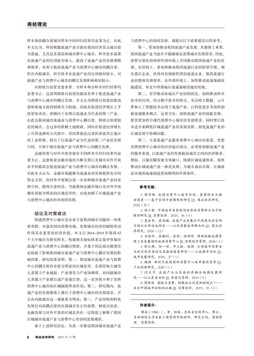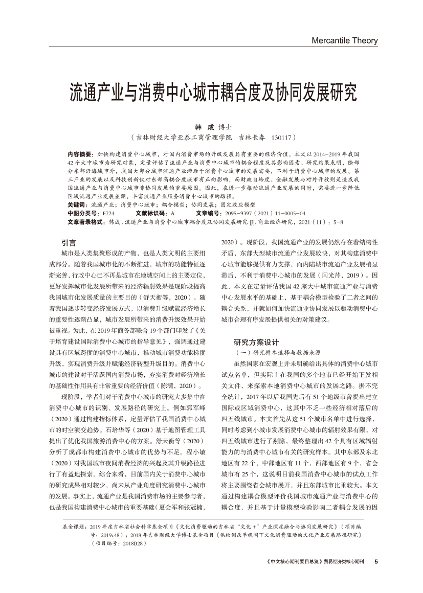 | 流通产业与消费中心城市耦合度及协同发展研究 |