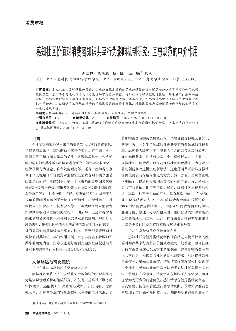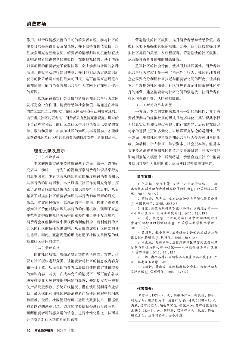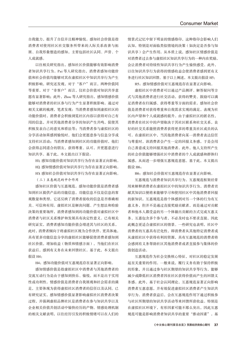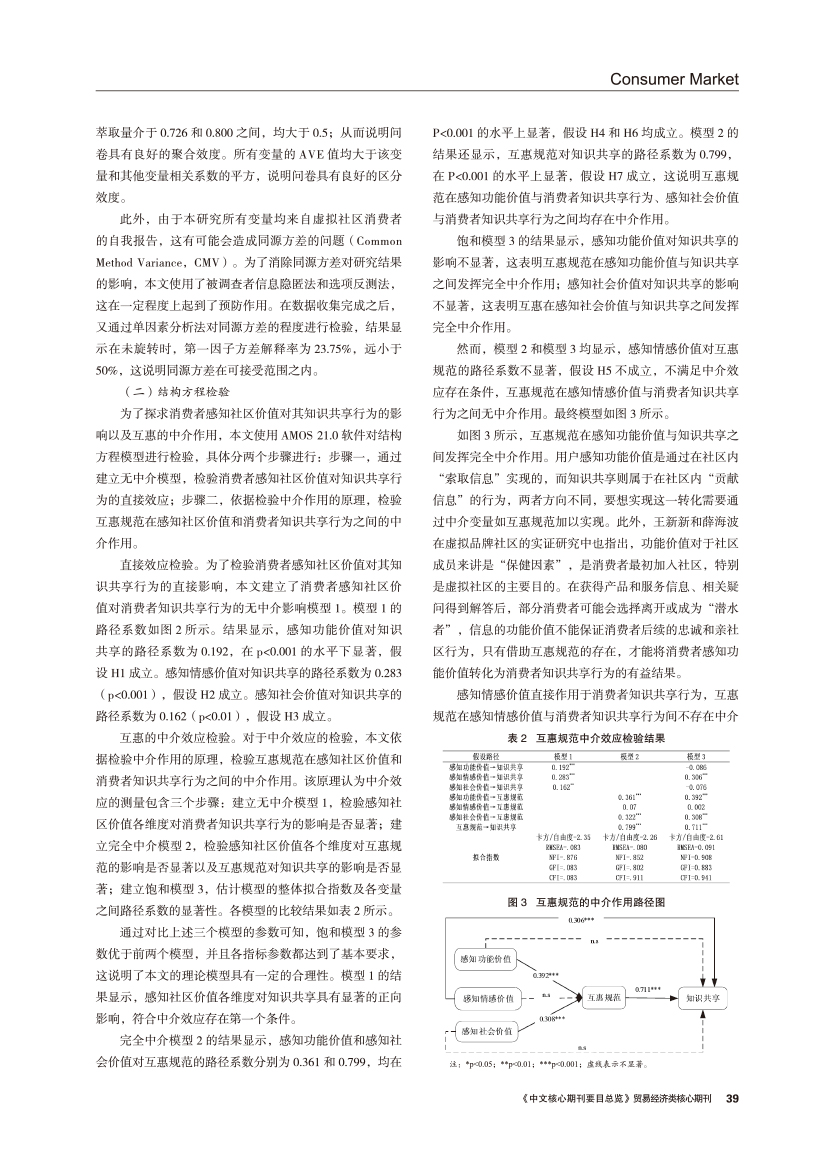 | 感知社区价值对消费者知识共享行为影响机制研究:互惠规范的中介作用 |