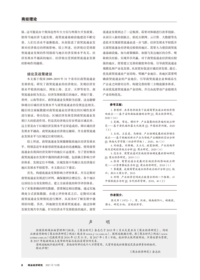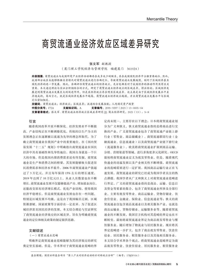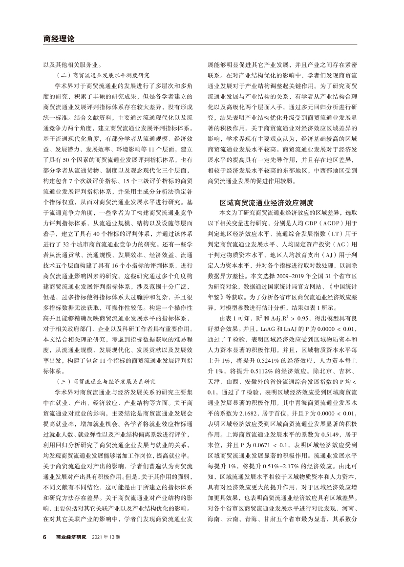 | 商贸流通业经济效应区域差异研究 |