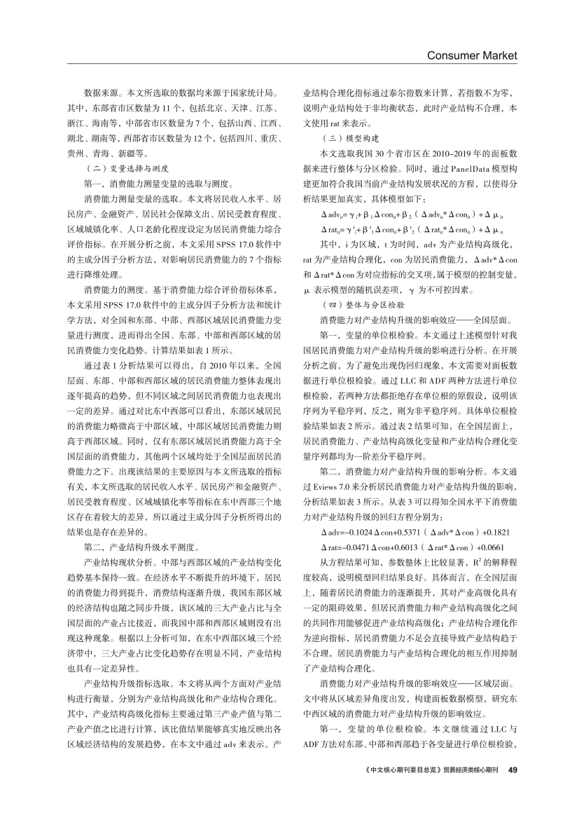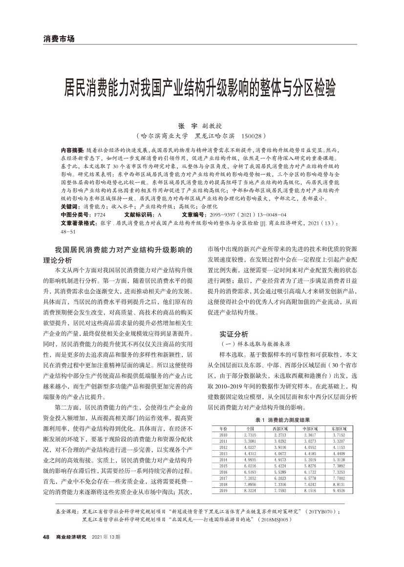 | 居民消费能力对我国产业结构升级影响的整体与分区检验 |