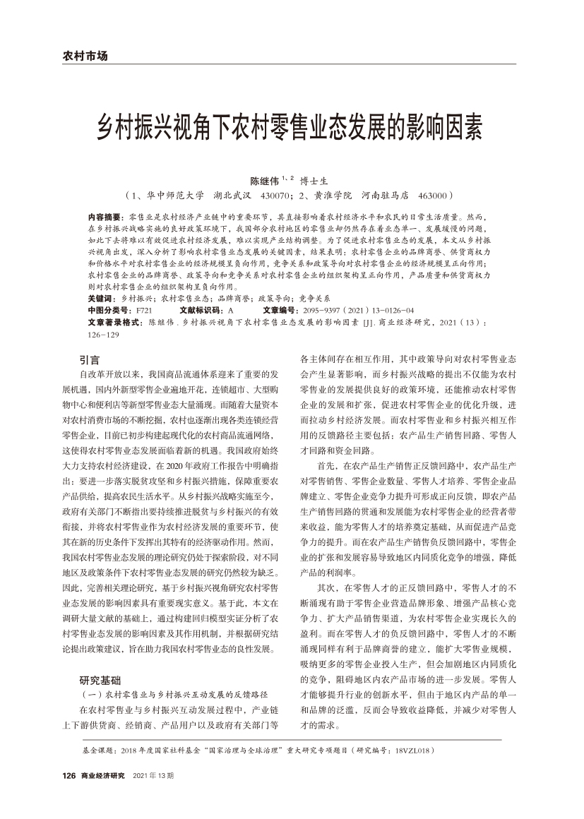 | 乡村振兴视角下农村零售业态发展的影响因素 |
