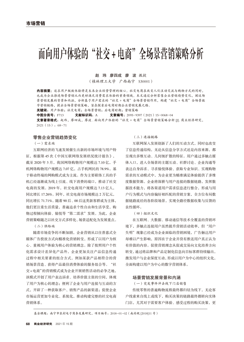 | 面向用户体验的“社交+电商”全场景营销策略分析 |