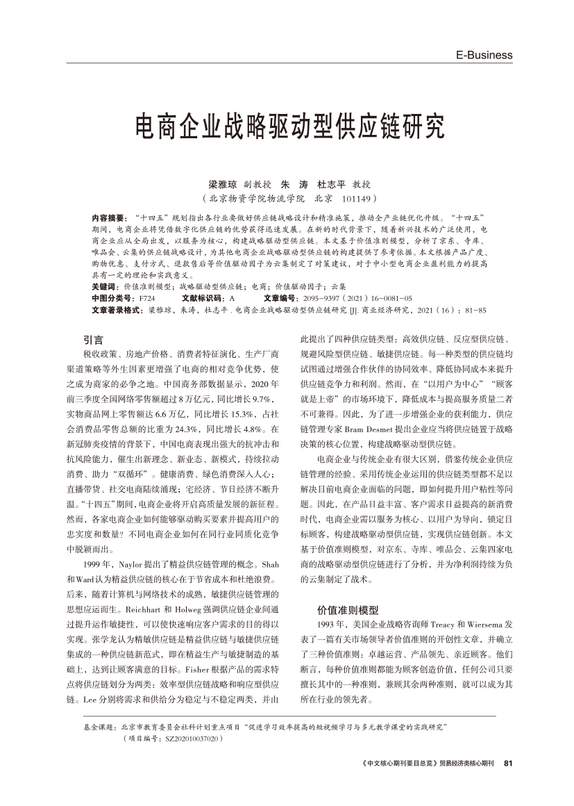 电商企业战略驱动型供应链研究