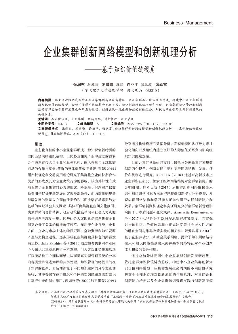 | 企业集群创新网络模型和创新机理分析 ——基于知识价值链视角 |
