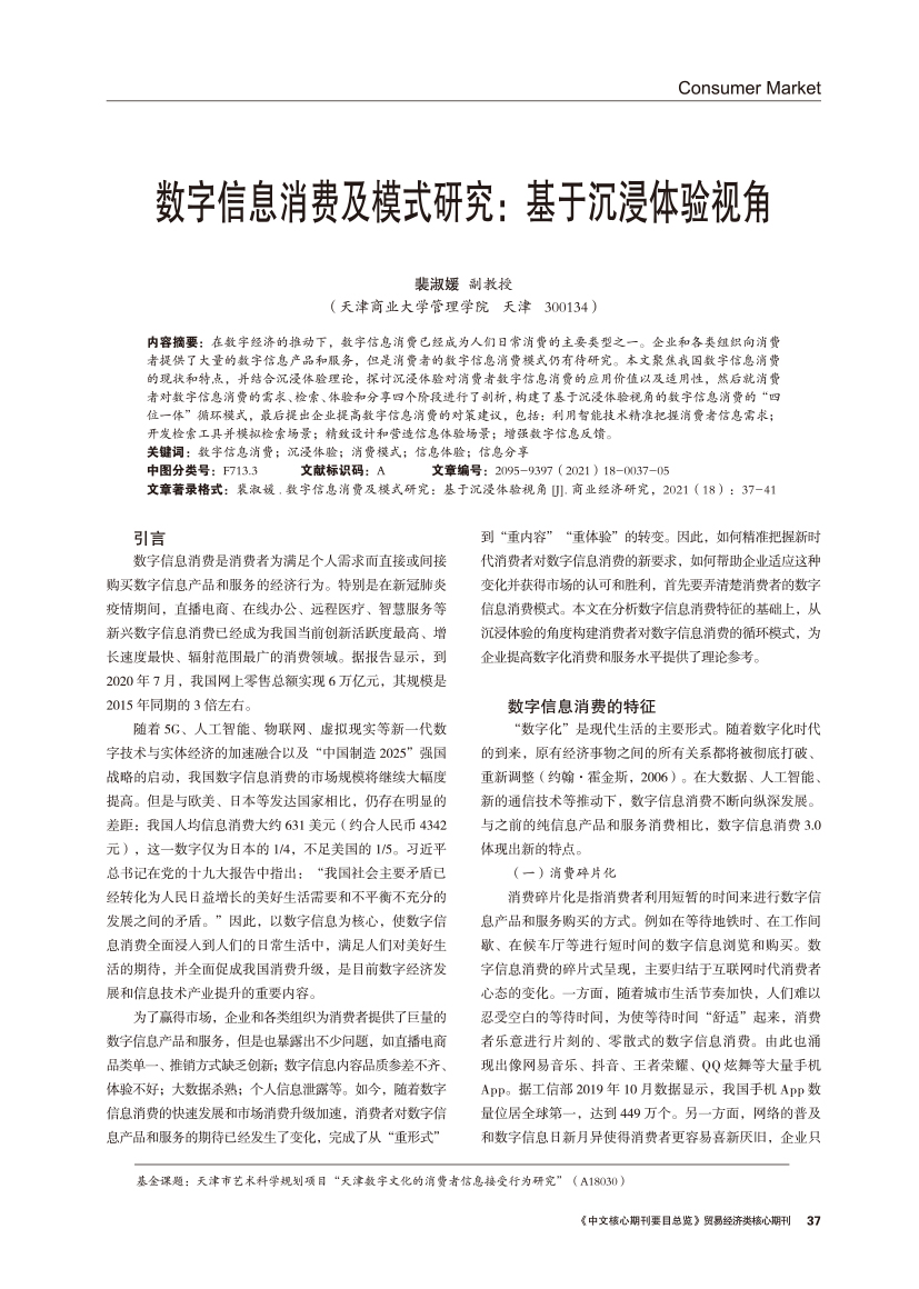 | 数字信息消费及模式研究:基于沉浸体验视角 |