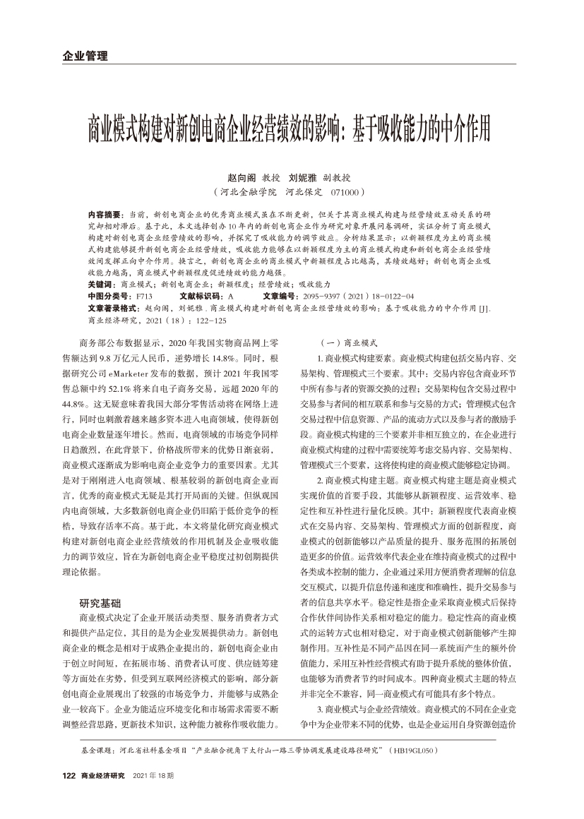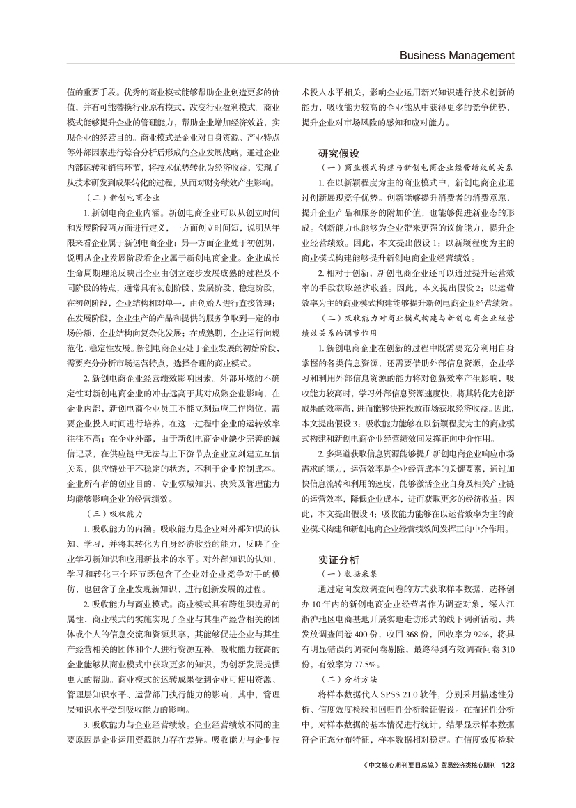 | 商业模式构建对新创电商企业经营绩效的影响:基于吸收能力的中介作用 |