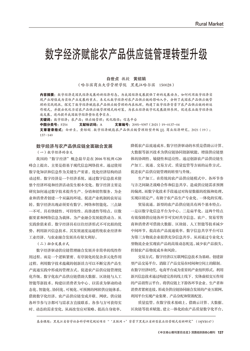 | 数字经济赋能农产品供应链管理转型升级 |