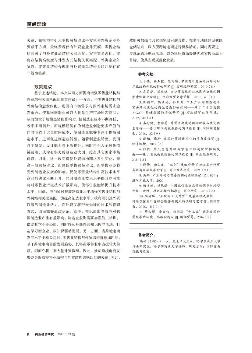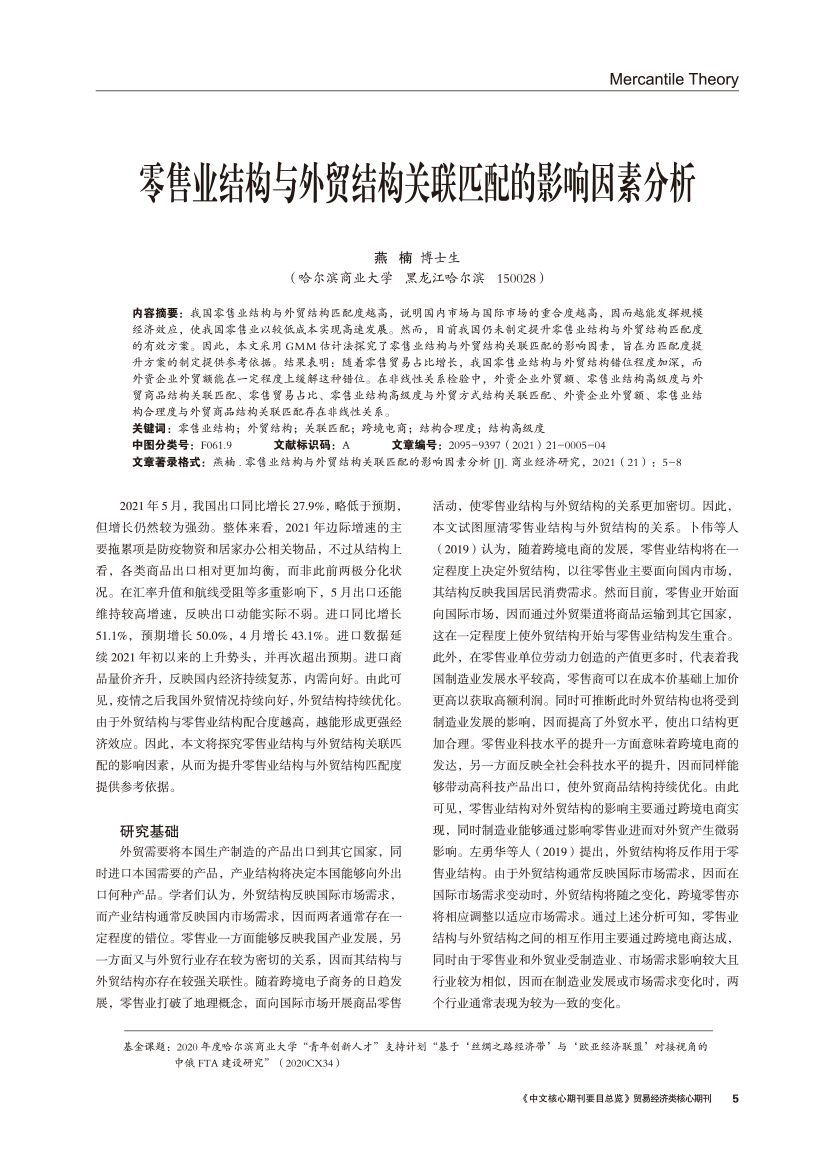 | 零售业结构与外贸结构关联匹配的影响因素分析 |