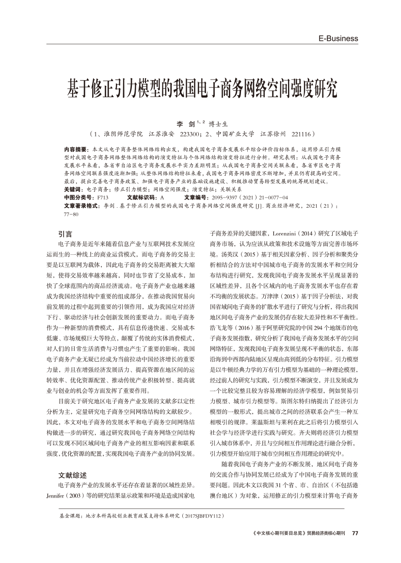| 基于修正引力模型的我国电子商务网络空间强度研究 |