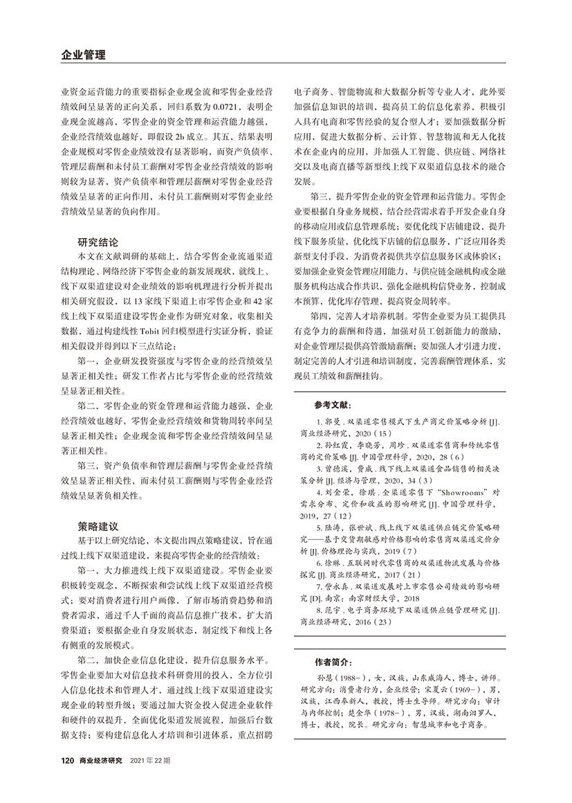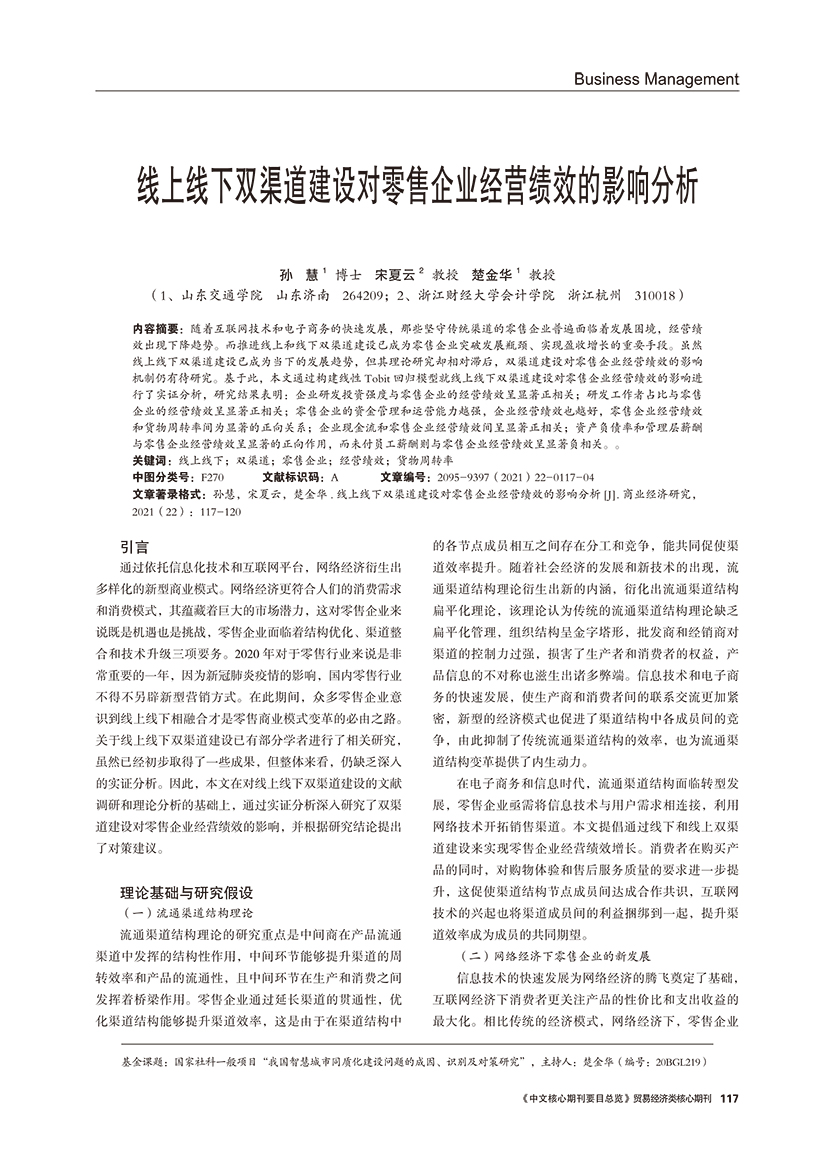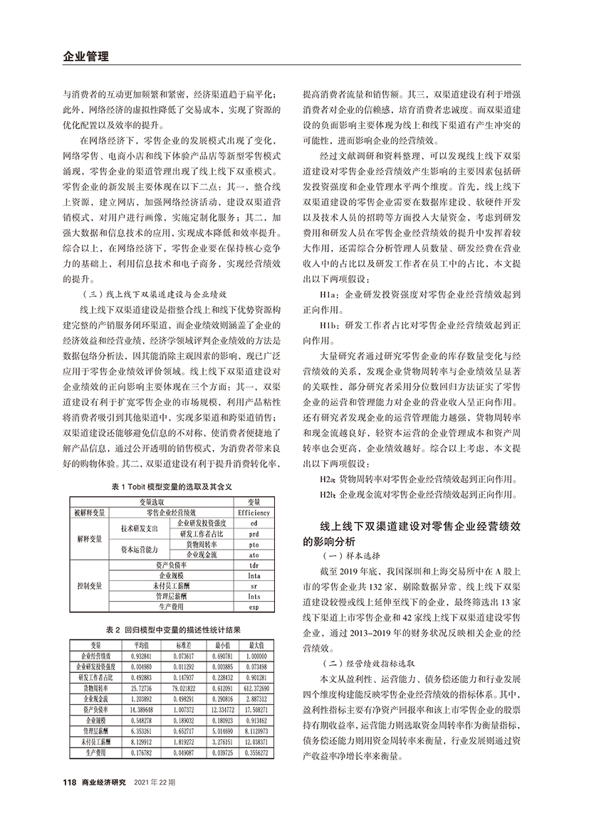 | 线上线下双渠道建设对零售企业经营绩效的影响分析 |