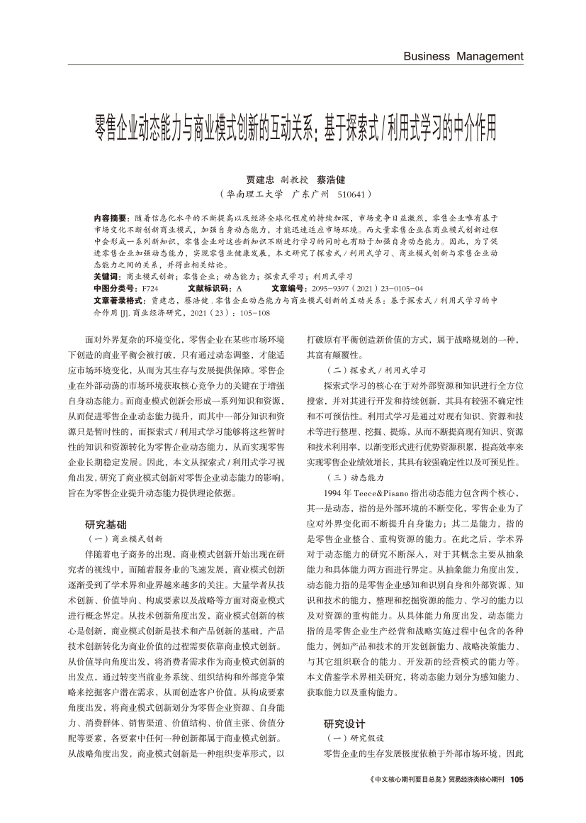 | 零售企业动态能力与商业模式创新的互动关系:基于探索式/利用式学习的中介作用 |