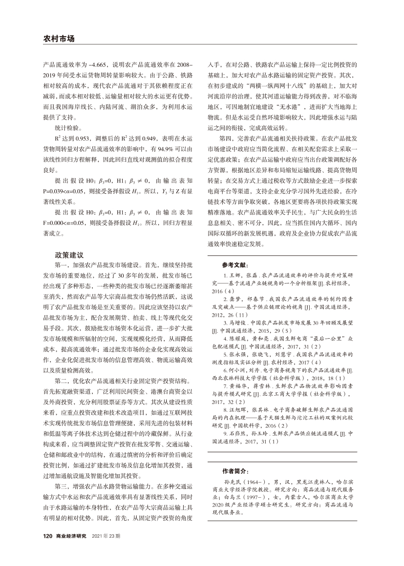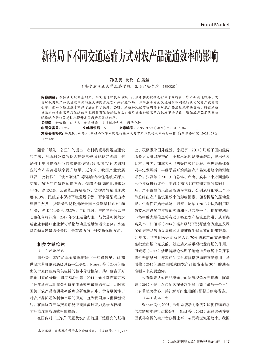 | 新格局下不同交通运输方式对农产品流通效率的影响 |