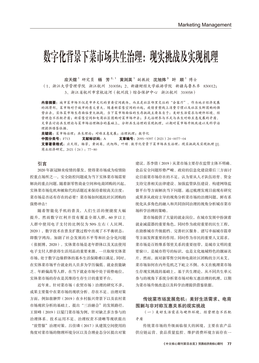 | 数字化背景下菜市场共生治理:现实挑战及实现机理 |