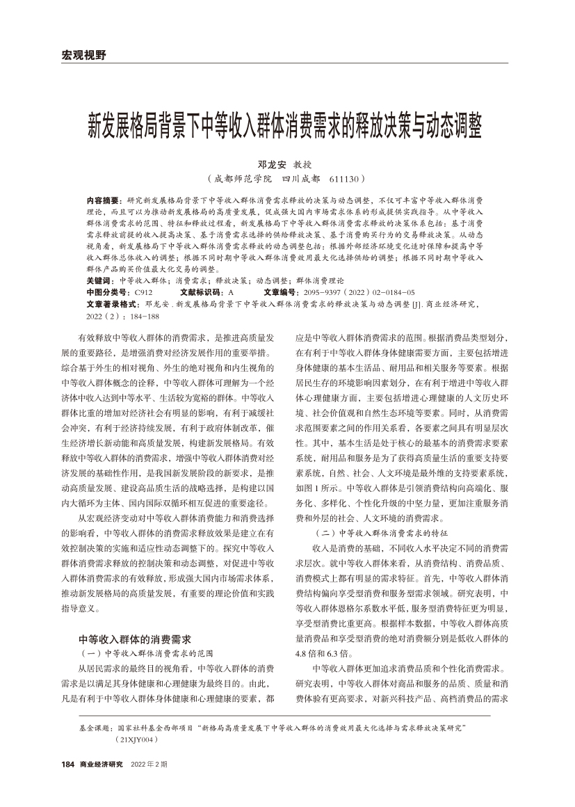 | 新发展格局背景下中等收入群体消费需求的释放决策与动态调整 |