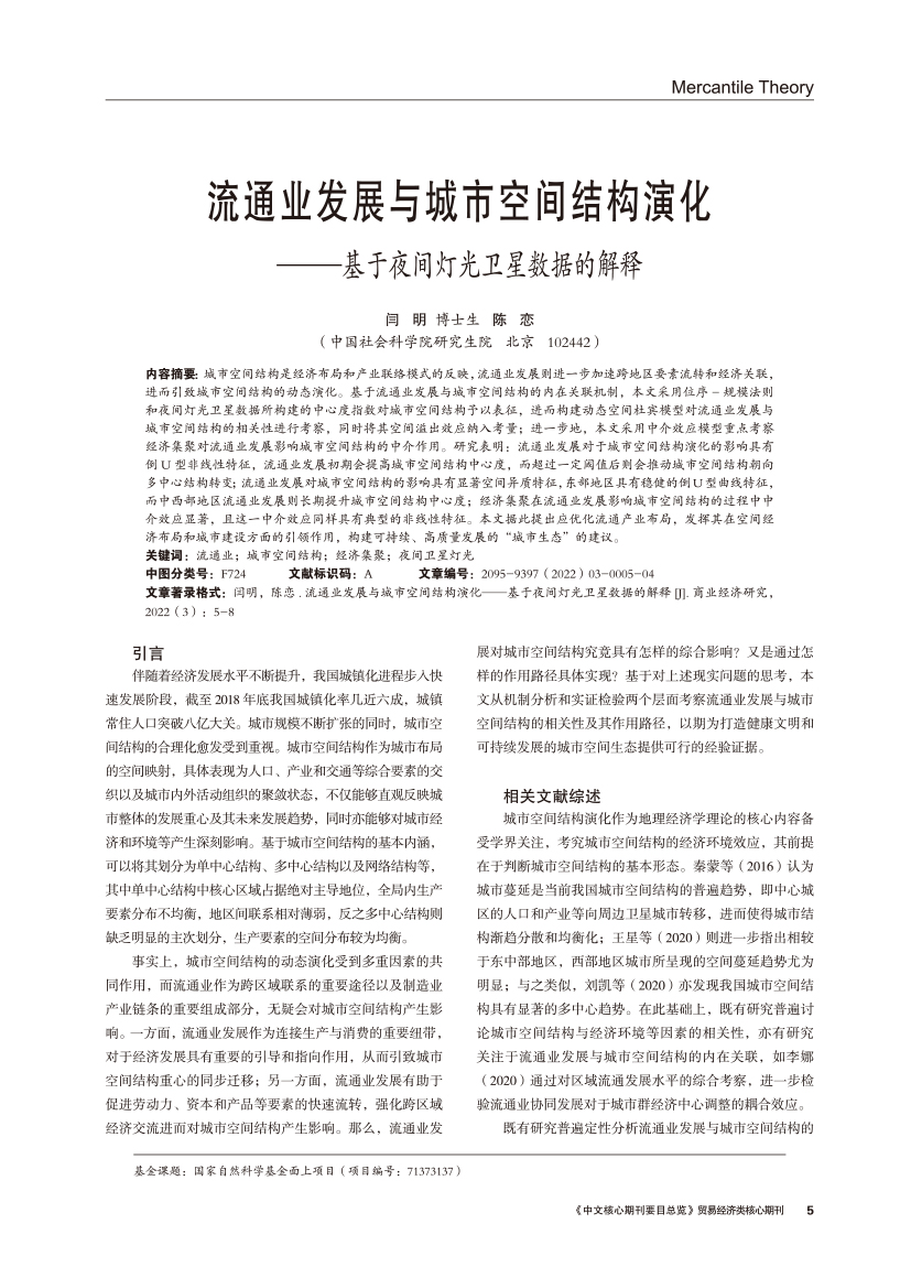 | 流通业发展与城市空间结构演化 ——基于夜间灯光卫星数据的解释 |