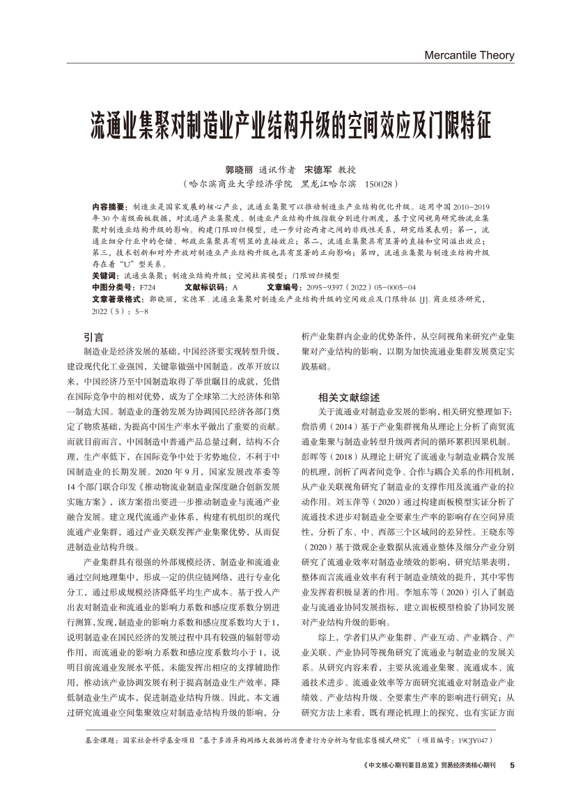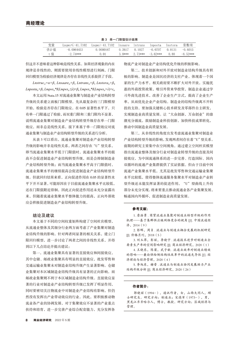 | 流通业集聚对制造业产业结构升级的空间效应及门限特征 |