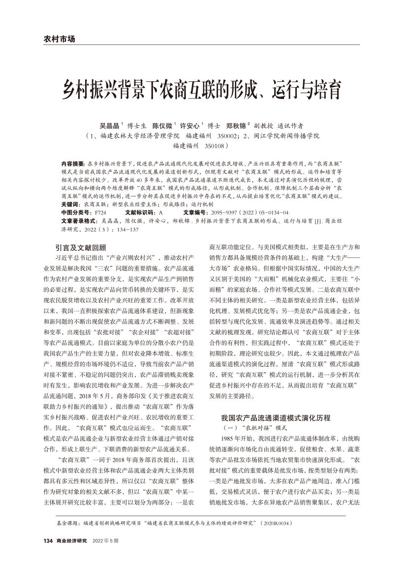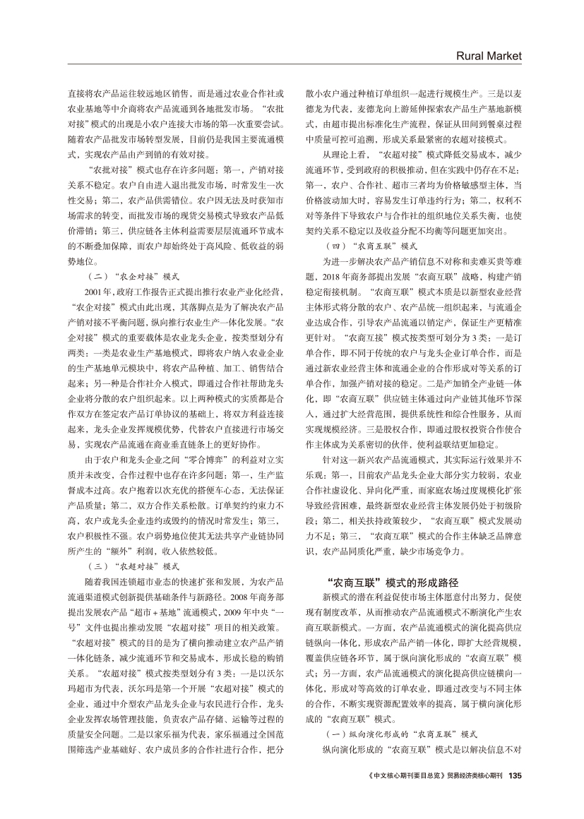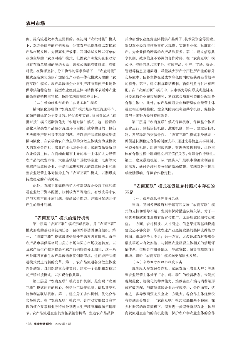 | 乡村振兴背景下农商互联的形成、运行与培育 |